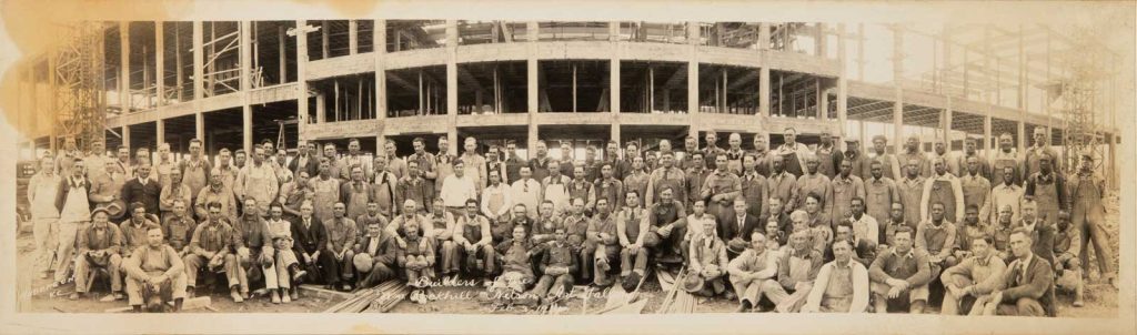 These men built the Nelson-Atkins building. This photograph is one of the frustratingly few records we have to access their lives and their work together. At least some of them, we think, belonged to the Laborers Local #264 and #1290, and possibly Local #555 of the Mason Plaster Tenders Union. If you recognize a face, let us know.