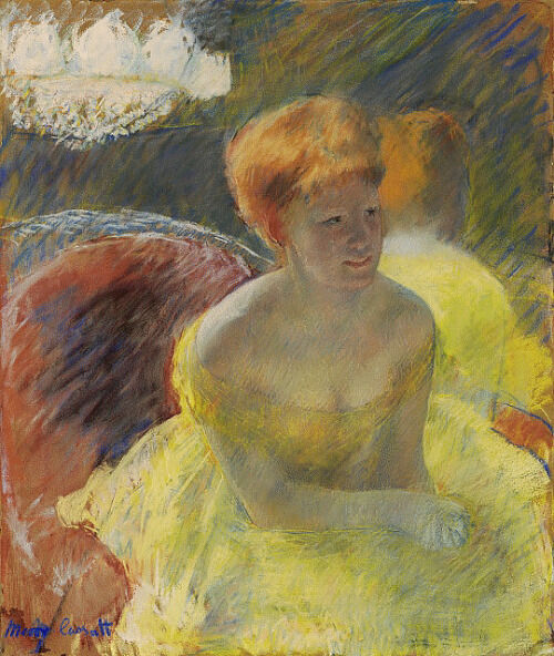 Mary Cassatt, At the Theater, ca. 1879, pastel on paper, 21 13/16 x 18 1/8 in. (55.4 x 46.1 cm), Purchase: acquired through the generosity of an anonymous donor, F77-33
