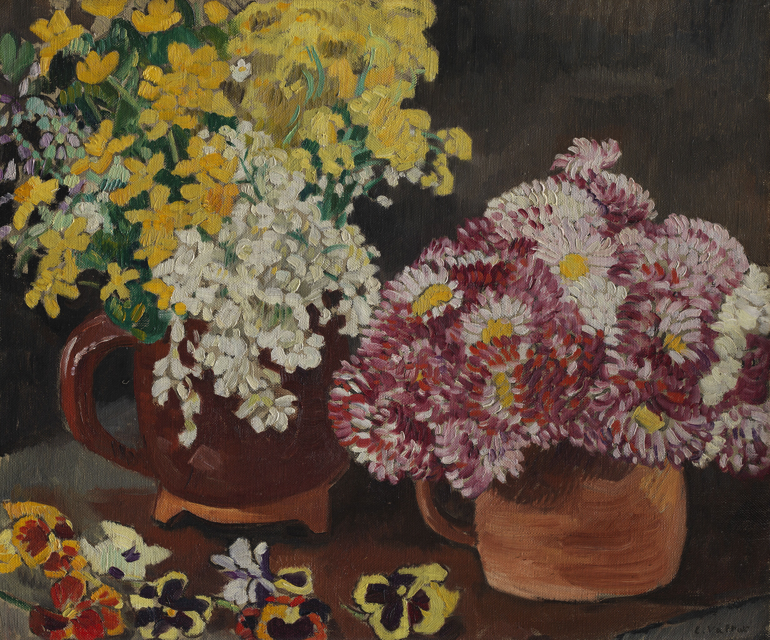 Louis Valtat, Two Bouquets with Daffodils, Snowdrops, Daisies, and Pansies, ca. 1927