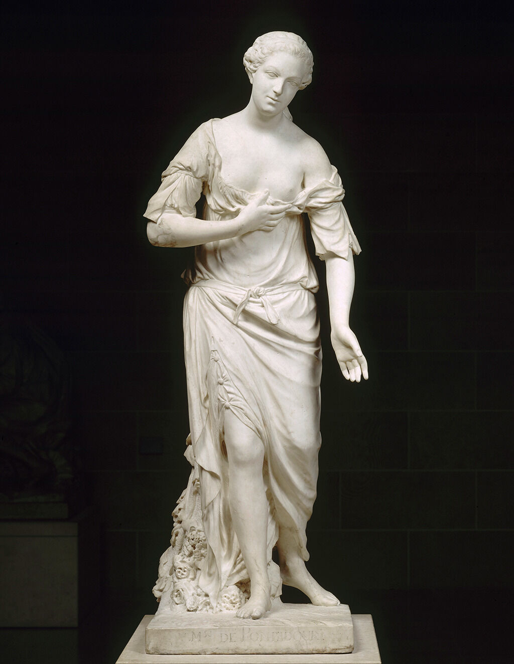 The frequency with which Boucher’s works were replicated makes it difficult to identify which are originals and which are working drawings, counterproofs, or copies. See Regina Shoolman Slatkin, “Some Boucher Drawings and Related Prints,” Master Drawings 10, no. 3 (Autumn 1972): 264–331. Both the Nelson-Atkins and Getty drawings are accepted as original works by the artist. The solid dating of the Getty picture to the early 1750s, confirmed by the drawing’s inscription documenting Boucher’s gift to a “M. Denis” in 1752, supports that the Nelson-Atkins pastel shares a similar date and was produced in the afterglow of Pompadour’s performance as Venus.