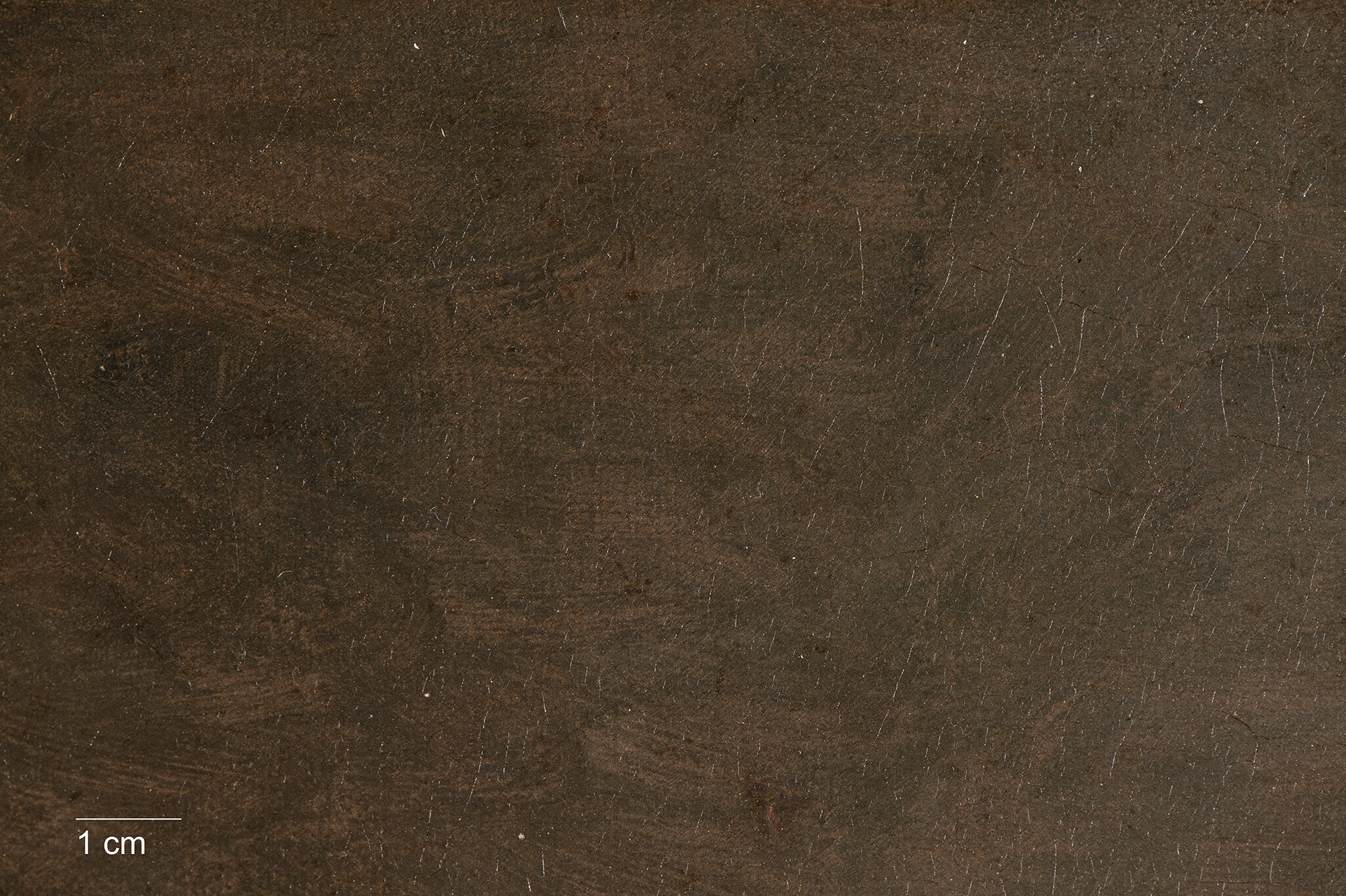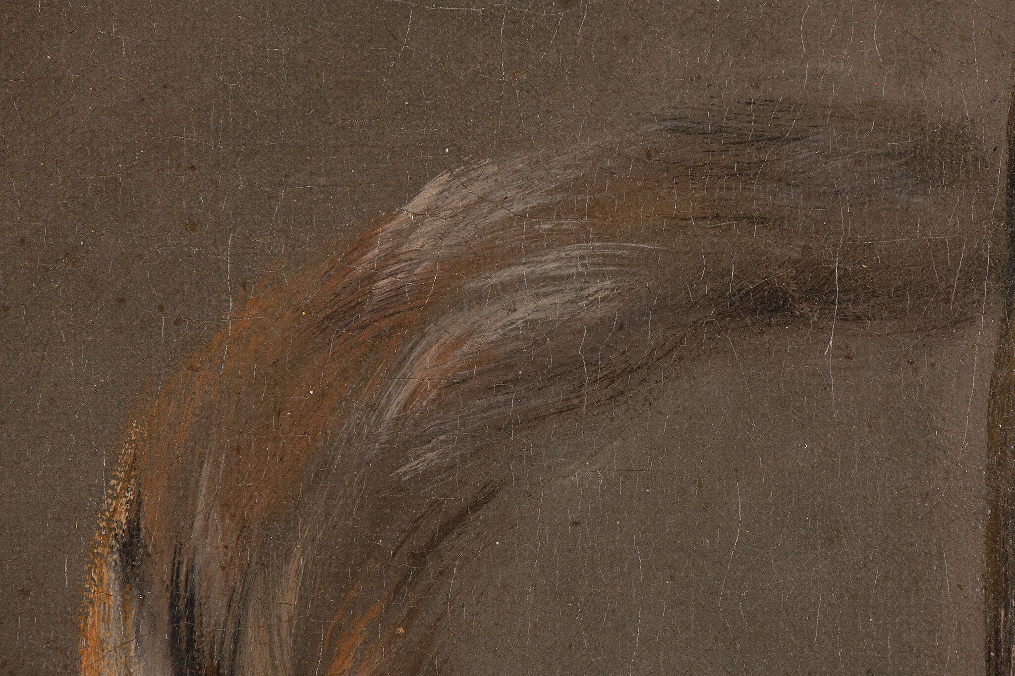 The left edge of the picture plane has been retouched, preventing identification of lower layers. However, losses near the left edge confirm the presence of the red ground layer along this side.
