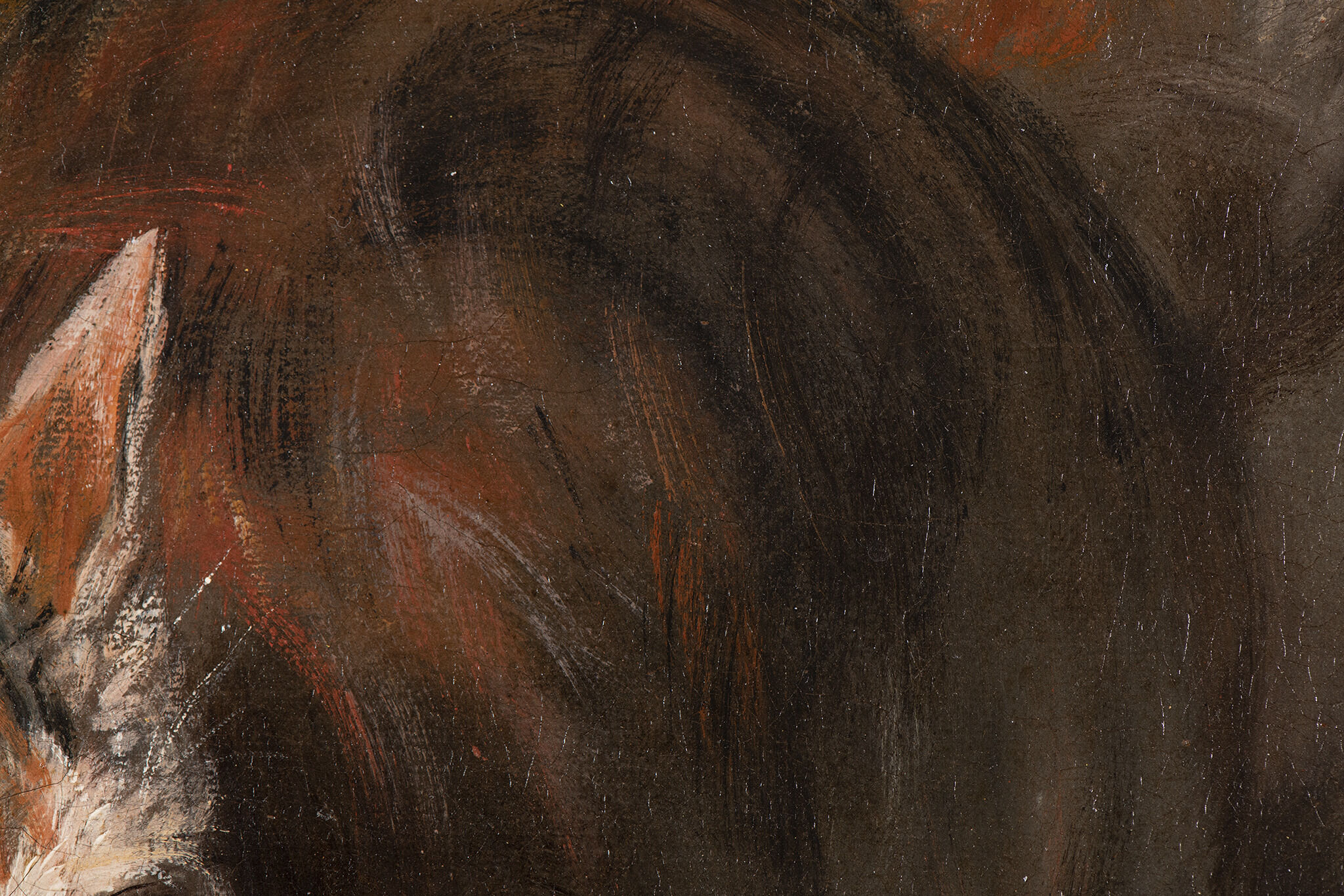 Fig. 8. Detail of the cat’s tail, illustrating Chardin’s use of background paint as the lower layer of the tail, Still Life with Cat and Fish (1728)