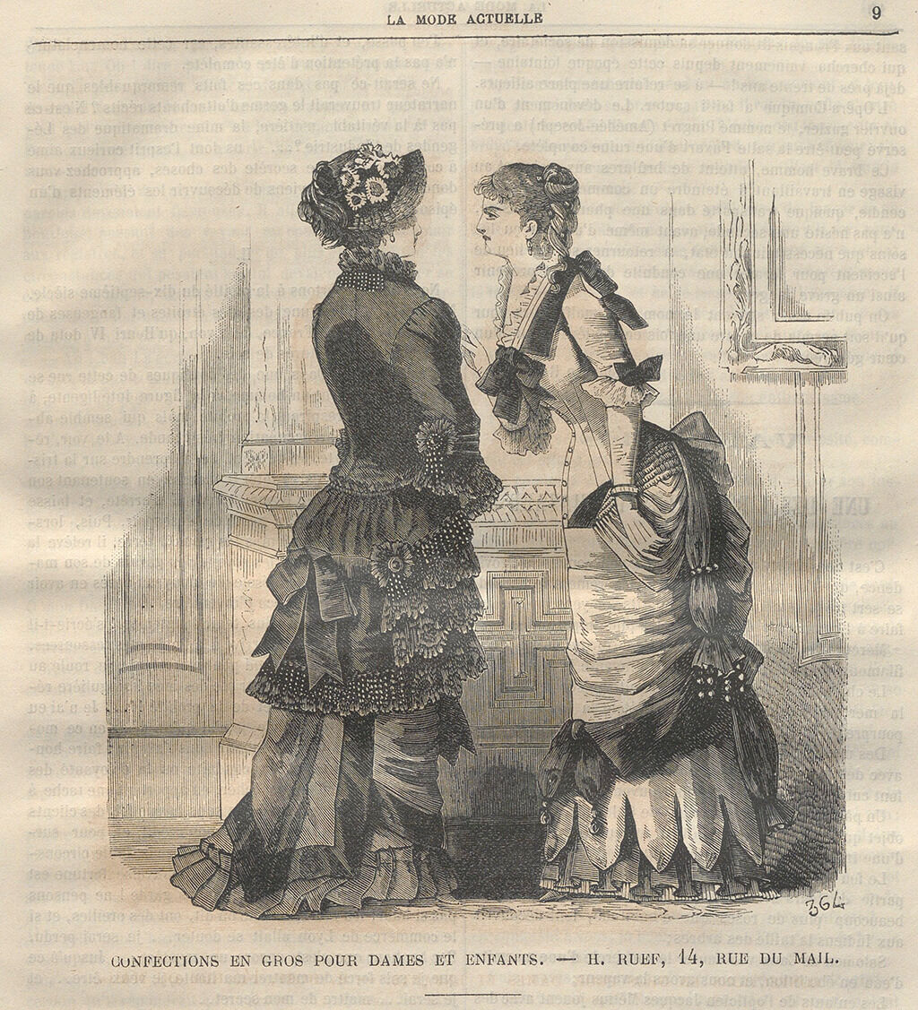 “Confections en Gros pour Dames et Enfants: Cyprienne,” La Mode Actuelle: Journal professionnel des couturières et des modistes (April 1, 1882): 9. “Chapeau de paille noire garni de fleurs et plumes.”