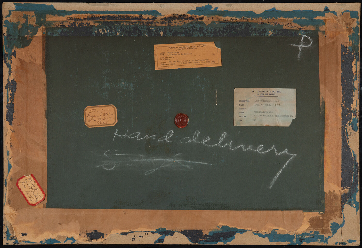 Degas, 1834–1917, The Pennsylvania Museum of Art, Fairmont, PA, 1936, no. 37, as The Millinery Shop, L’Atelier de la modiste, Petites modistes.