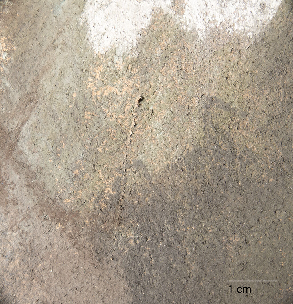 At 48.9 x 71.8 centimeters, the primary support is within range of the Marine 20 size standard-format supportstandard-format supports: Commercially prepared supports available through art suppliers, which gained popularity in the nineteenth century during the industrialization of art materials. Available in three formats figure (portrait), paysage (landscape), and marine (marine), these were numbered 1 through 120 to indicate their size. For each numbered size, marine and paysage had two options available: a larger format (haute) and smaller (basse) format..1David Bomford, Jo Kirby, John Leighton, and Ashok Roy, Art in the Making: Impressionism (London: Yale University Press, 1991), 46. The primary support is a gray-toned, medium thickness, wove paperwove paper: One of the two types of paper. Wove papers may be either machine or handmade, and are produced from molds that have a woven wire mesh. The weave of the mesh can be so tight that it produces no visible pattern within the paper sheet, and often wove papers have a smoother surface than laid papers. Wove papers were developed during the mid-eighteenth century, but did not come into widespread use until later. The other type of paper is laid paper.. Prior to media application, the corners were trimmed, and the edges are turned over a paperboard2Paperboard refers to ”stiff and thick ‘paper’ which may range from a ‘card’ of 0.20 mm or 1/125th of an inch or more and vary in composition from pure rag to wood, straw, and other substances having little or no affinity with ‘paper’ beyond the method of manufacture.“ See E. J. Labarre, A Dictionary of Paper and Paper-Making Terms (Amsterdam: N. V. Swets and Zeitlinger, 1937), 208–09. The board may also be a panel. Panels or panel boards are stiff and tough multi-ply boards composed of leather and/or waste papers. They were saturated with oils and hardened with heat. E. J. Labarre, Dictionary, 182. and attached, at the edges only, to the verso, with a 3.5 to 4.5 cm overlap. Chromatically, the paper reads as beige to brown;3The description of paper color, texture, and thickness follows the standard set forth in Elizabeth Lunning and Roy Perkinson, The Print Council of America Paper Sample Book: A Practical Guide to the Description of Paper (Boston: Print Council of America, 1996), unpaginated. In this case, there is no good color match for the paper: it is between the darkest beige and the brown. however, close inspection reveals that it was manufactured from a mixed furnishfurnish: in paper making, furnish refers to the fibers that compose the paper as well as to the mixture of fibers and water that eventually form the paper sheet. with longer and shorter fibers in both light and dark blue as well as black and brown fibers scattered throughout.4“Mottled” papers were composed of mixed furnish taken from various sources such as dyed linen, cotton, Union (fabric made from a linen, wool, or cotton warp and a wool weft), and wool rags or fibers, as well as jute fibers, and dyed or bleached sulphite wood pulps. See Julius Erfurt, The Dying of Paper Pulp (London: Scott, Greenwood and Co., 1901), 141–52. The rough paper texture suggests that it was produced specifically for charcoal, chalk, or pastel. There is no watermarkwatermark: An identifying mark in a paper sheet which is created by tying wires to the papermaking mold. Watermarks are most easily viewed with transmitted light; however, some can be read with raking light. or other indication of either a mill or colorman’s shopartist supplier(s): Also called colormen and color merchants. Artist suppliers prepared materials for artists. This tradition dates back to the Medieval period, but the industrialization of the nineteenth century increased their commerce. It was during this time that ready-made paints in tubes, commercially prepared canvases, and standard-format supports were available to artists for sale through these suppliers. It is sometimes possible to identify the supplier from stamps or labels found on the reverse of the artwork (see canvas stamp and supplier mark). where the drawing paper was attached to the paperboard. The paperboard is gray in tone, and the back of the board was sealed with a blue-gray paint prior to application of the drawing paper (Fig. 6).5Nineteenth-century Parisian colormen’s catalogues list “Panneaux et Cartons d’Etudes” (Panels and Boards for Studies), fabricated specifically for pastel. See *Fabrique de Couleurs et Vernis, Toiles à Peindre, Carmin, Laques, Jaunes de Chrome de Spooner, Couleurs en Tablettes et en Pastilles, Pastels, et Généralment Tout Ce Qui Concerne la Peinture et les Arts, Encres Noires et de Couleurs Pour la Typograpie et la Lithographie, Fabrique à Grenelle (Paris: Le Franc, 1862), 40. The advertised sizes do not correspond to the artwork’s dimensions. However, it is difficult to dismiss the possibility that the artist modified a panel to fit his qualifications.