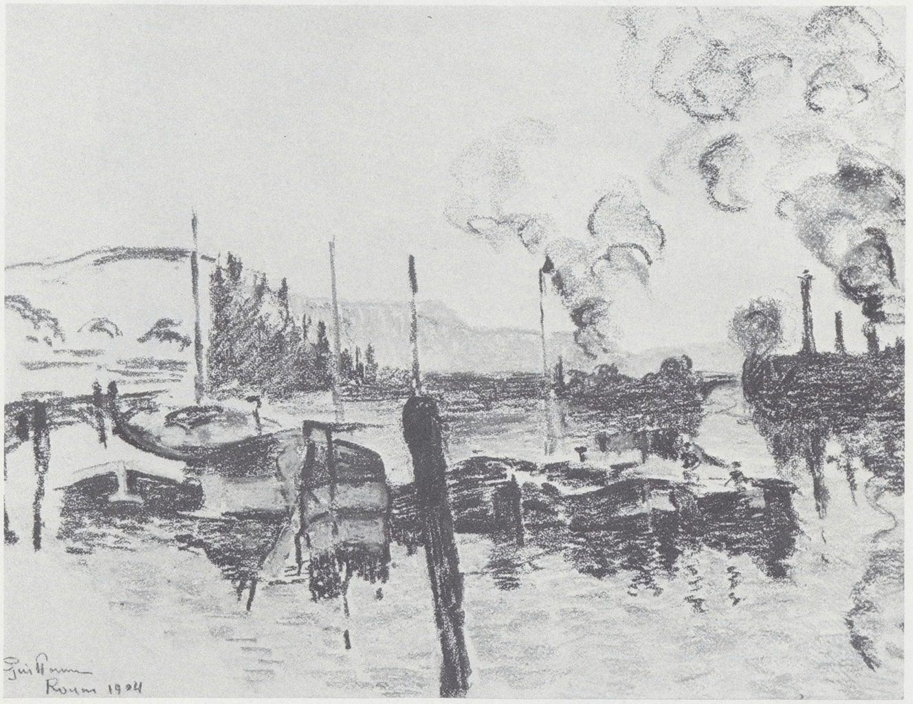 Armand Guillaumin, Rouen, 1904, pastel on paper, 18 1/8 x 23 13/16 in. (46 x 60.5 cm), unknown location; reproduced in Importants Tableaux Modernes (Paris: Hôtel Drouot, December 3, 1973), no. 46.