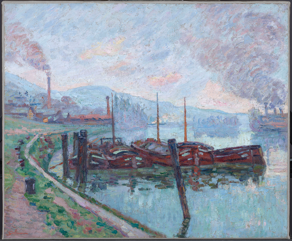 Armand Guillaumin, The Barges of Rouen, 1904, oil on canvas, 21 x 31 1/2 in. (53 x 80 cm), private collection; reproduced in Armand Guillaumin (1841–1927): L’Impressioniste Fauve, exh. cat (Chatou, France: Musée Fournaise, 2003), no. 53, pp. 46–47.