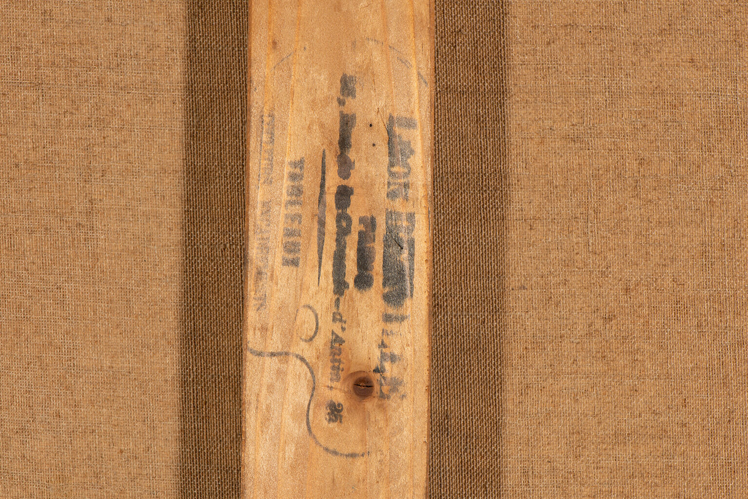 There is no documentation that Léon Berville sold primed papers stretched and applied to canvases. However, Lefranc offered pastellists a variety of stretched papers and canvases in rectangular and oval formats, both with or without the inclusion of pumice. Unstretched papers, also in a variety of sizes, were sold with three types of prepared grounds: with pumice, with sand, and smooth. See Lefranc et Cie Catalogue: Fabrique de couleurs et vernis; Toiles à peindre; Carmin, laques, jaunes de chrome de Spooner; Couleurs en tablettes et en pastilles, pastels et généralement tout ce qui concerne la peinture et les arts; Encres noires et de couleurs Pour la Typographie et la Lithographie; Fabrique à Grenelle (Paris: Imprimerie P.-A. Bourdier et Cie, 1862), 40–41.