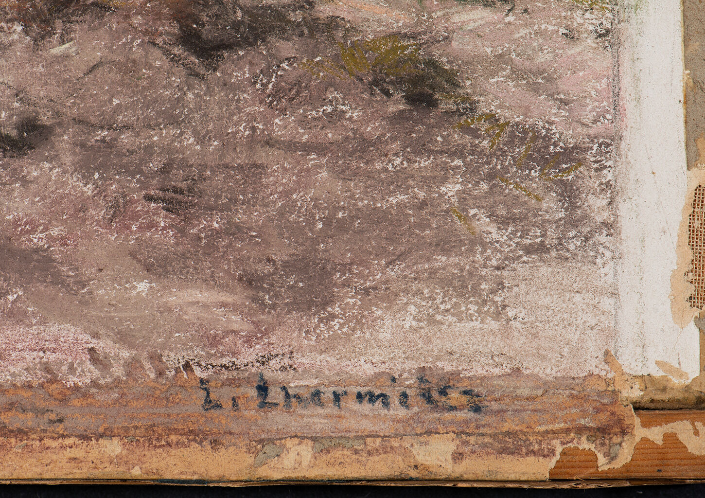Lhermitte admired Courbet, Millet, and the Barbizon-era artists, and he was invited by Degas to exhibit with the Impressionists in 1879 (he refused), but he regularly exhibited at the annual Salons of Paris. See Monique Le Pelley Fonteny, “Léon Augustin Lhermitte,” in Monique Le Pelley Fonteny, ed., Léon Lhermitte (1844–1925), exh. cat. (Beverly Hills: Galerie Michael, 1989), unpaginated.