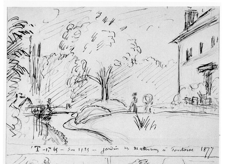 Camille Pissarro, The Garden of Mathurins, ca. 1877, ink and pencil on paper, dimensions unknown, Wildenstein Archives, Paris.