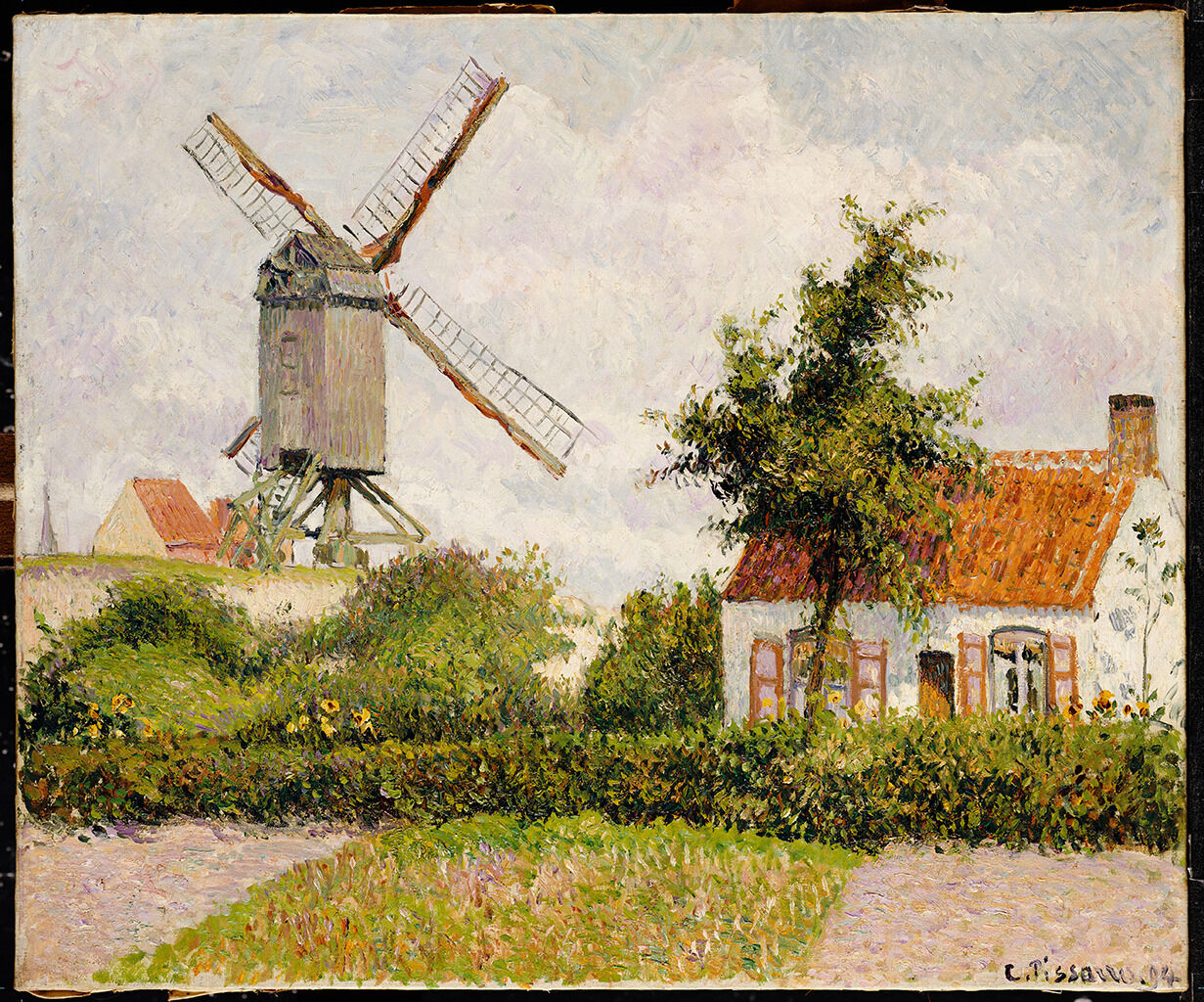 In the spring of 1884, Camille Pissarro embarked on a significant artistic journey by renting a house in Éragny, a serene village nestled along the banks of the river Epte, just northwest of Paris.1Pissarro was exuberant about this move, writing to his son, Lucien, “Oui, nous avons choisi Éragny-sur-Epte ; la maison est superbe et bon marché : mille francs, avec jardin et prés. C’est à deux heures de Paris, j’ai trouvé le pays plus beau que Compiègne” (Yes, we have decided on Éragny-sur-Epte; the house is superb and inexpensive: a thousand francs, with garden and meadows. It’s two hours from Paris, I found the country more beautiful than Compiègne). Camille Pissarro, Paris, to Lucien Pissarro, March 1, 1884, in Janine Bailly-Herzberg, ed., Correspondance de Camille Pissarro (Paris: Editions du Valhermeil, 2003), 1:291. All translations by the author unless otherwise noted. The allure of this location proved irresistible, prompting Pissarro to acquire the house in 1892 and solidify his connection to the place that would inspire him for the last two decades of his life.2Pissarro rented the house for eight years from one Monsieur Dallemagne. While Pissarro was in London, his wife learned the property would be sold and asked their family friend Claude Monet for a loan of 15,000 francs to secure it. The house still stands at what is now 29 rue Camille-Pissarro. See Joachim Pissarro and Claire Durand-Ruel Snollaerts, Pissarro: Critical Catalogue of Paintings, trans. Mark Hutchinson and Michael Taylor (Paris: Wildenstein Institute Publications, 2005), 3:499. Pissarro was captivated by Éragny’s scenic fields and meadows, and his artistic vision underwent a transformative shift there, when the Impressionist painter came under the spell of Neo-Impressionism’sNeo-Impressionism: A term coined in 1886 by French art critic Félix Fénéon to describe a style of painting pioneered by Georges Seurat. He and his followers espoused a scientific approach to color and a painting technique known as pointillism. systematic application of dots of pure color from 1886 to 1891. He returned to his Impressionist roots thereafter but with greater emphasis on capturing weather and light variations. As if to confirm those interests, he wrote to his son Lucien in 1891, “The weather has been very good these days—dry cold, white frost, and radiant sun—so I started a series of studies [out] of my window. . . . I feared that it was a bit the same motif, but the effects are so varied that they do completely different things.”3See Camille Pissarro, Éragny, to Lucien Pissarro, December 26, 1891, in Bailly-Herzberg, Correspondance de Camille Pissarro, 3:174. Indeed, the artist created numerous paintings focused on the seasonal evolution of the landscape as well as changes in color and light at different times of the day.