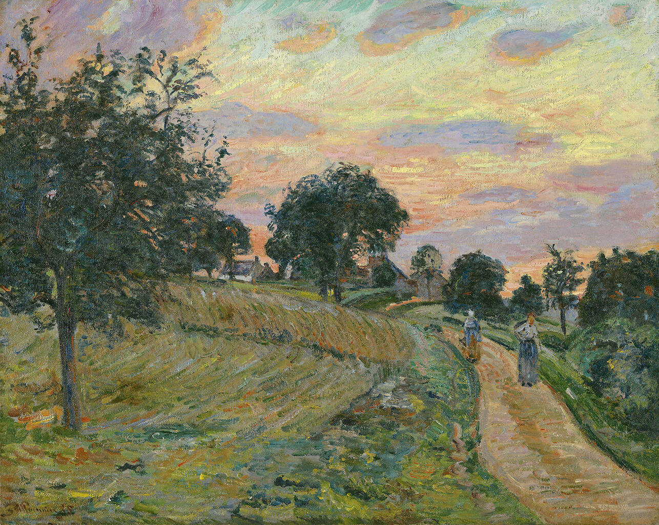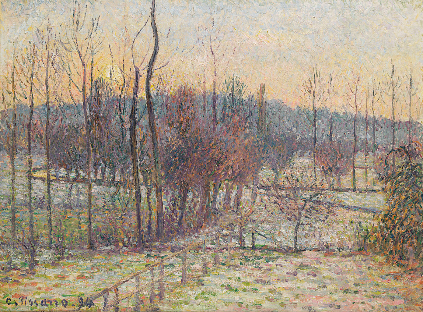 Fig. 6. Camille Pissarro, Sun Setting at Éragny, 1894, oil on canvas, 24 x 32 1/2 in. (61 x 82.6 cm), private collection
