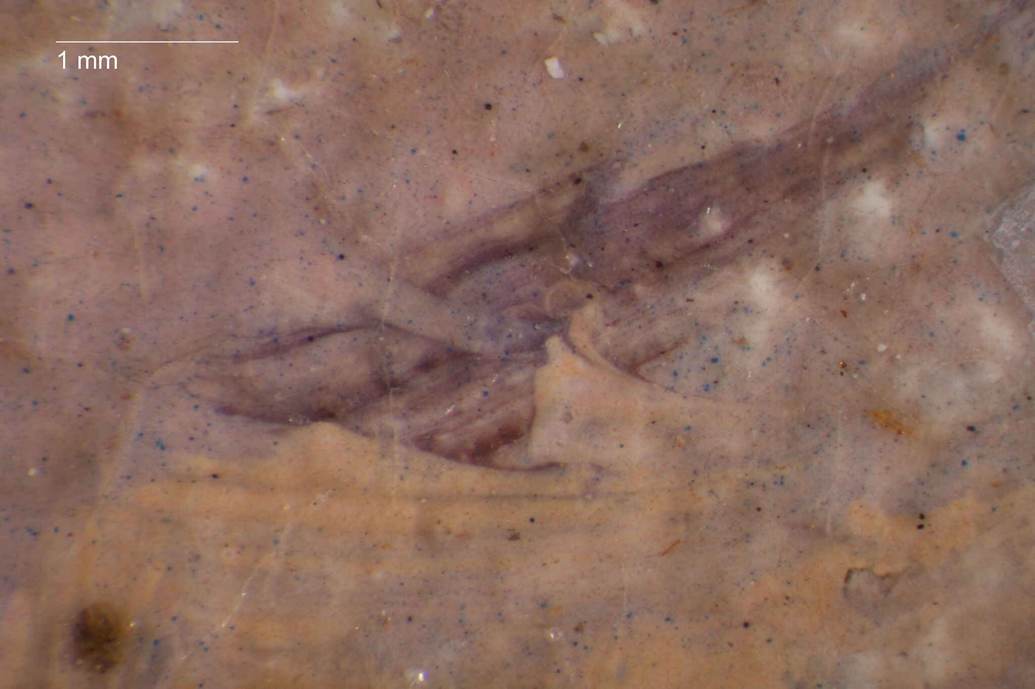 Fig. 8. Photomicrograph of the upper figure’s proper left eye, Study for “Young Girls Playing Volant” (ca. 1887), showing the artist’s wet-over-wet application of paint