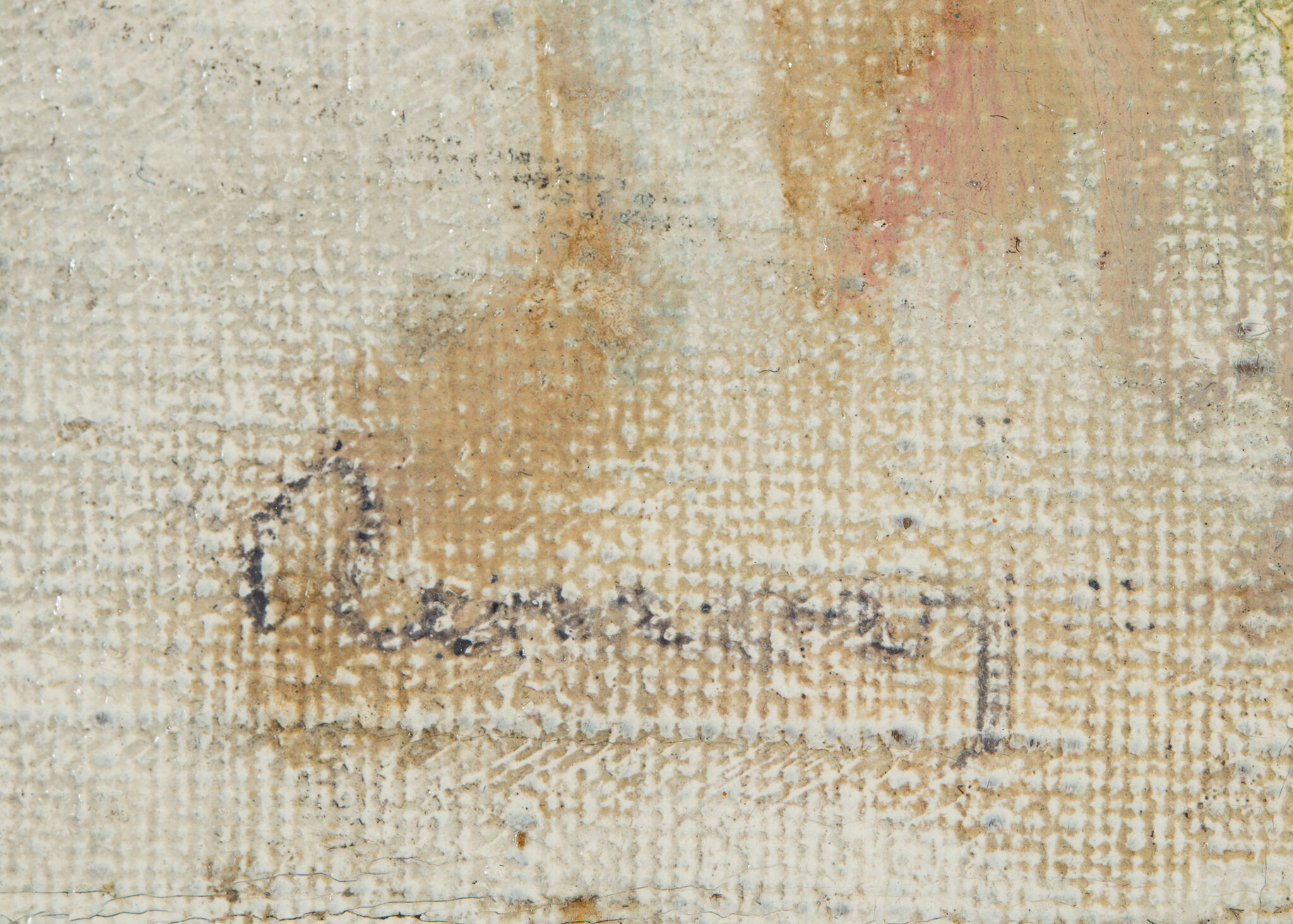 Although the signature is abraded, the study appears to have been signed with paint instead of marked with the imprint of a signature stamp. Detail photographs of signature stamps on several Renoir paintings can be found in Lucy and House, Renoir in the Barnes Foundation, 60.