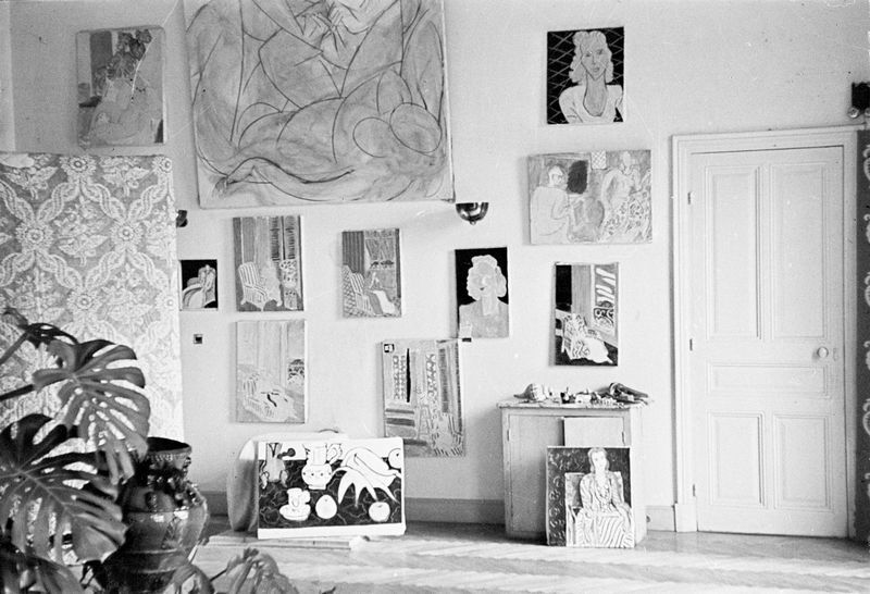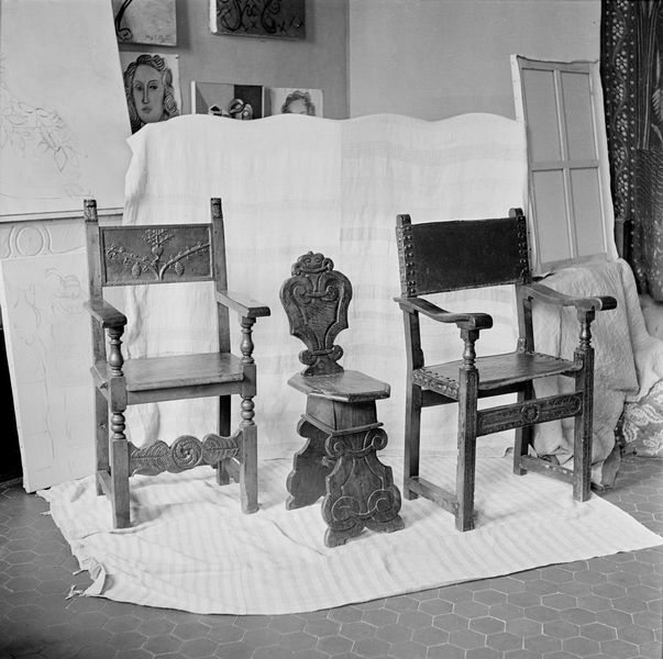 Fig. 4. Hélène Adant, Three carved wooden armchairs in Matisse’s studio, Vence, ca. 1946, gelatin silver print, Fonds Hélène Adant, Archives de la Bibliothèque Kandinsky, Centre Pompidou, Paris, no. M5050_X0031_ADA_3_580
