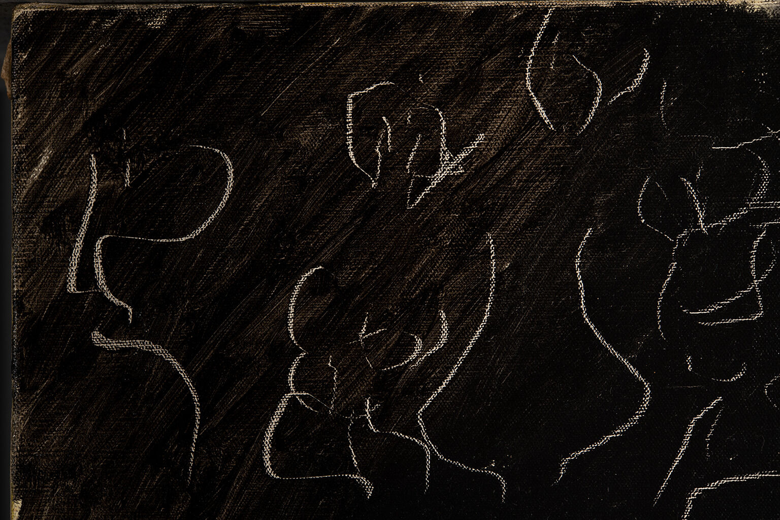 Fig. 16. Detail photograph of sgraffito lines in the upper left background, Seated Young Woman with an Amber Necklace (1942)