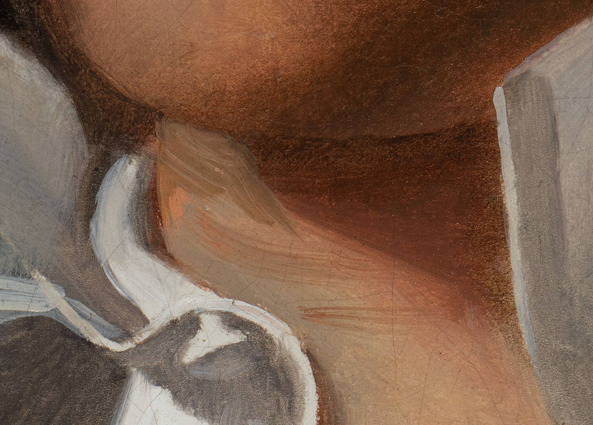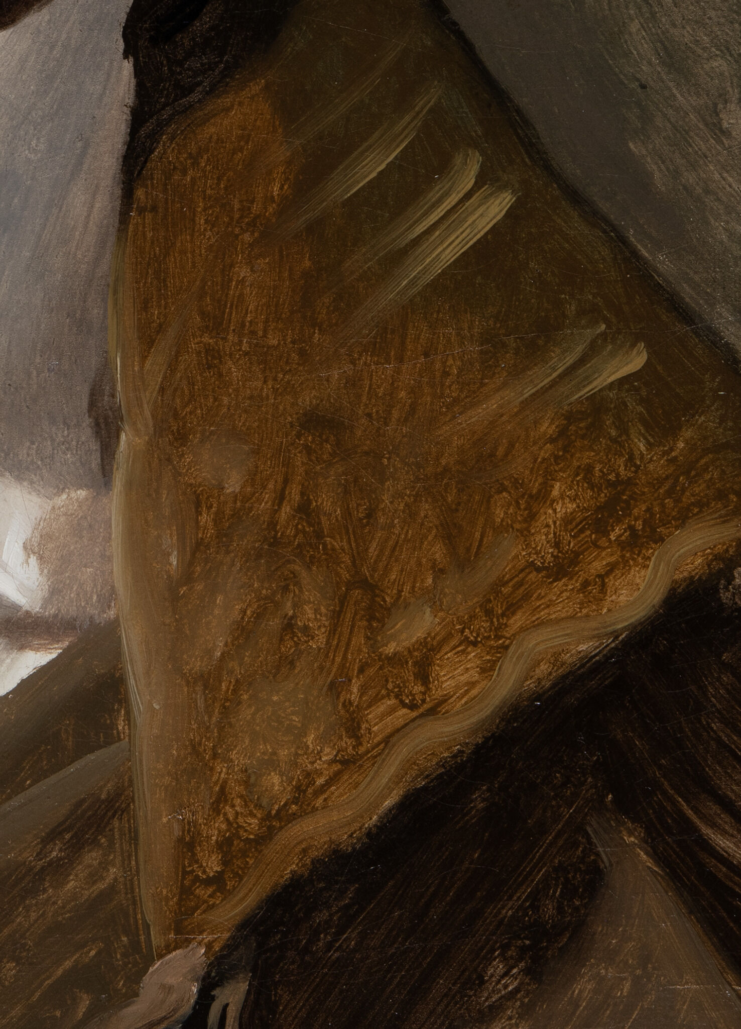 Fig. 9. Detail of the upper right background of Portrait of the Sculptor Paul Lemoyne (ca. 1810–11), slightly overexposed to show the energetic brushwork associated with the initial lay-in of the background