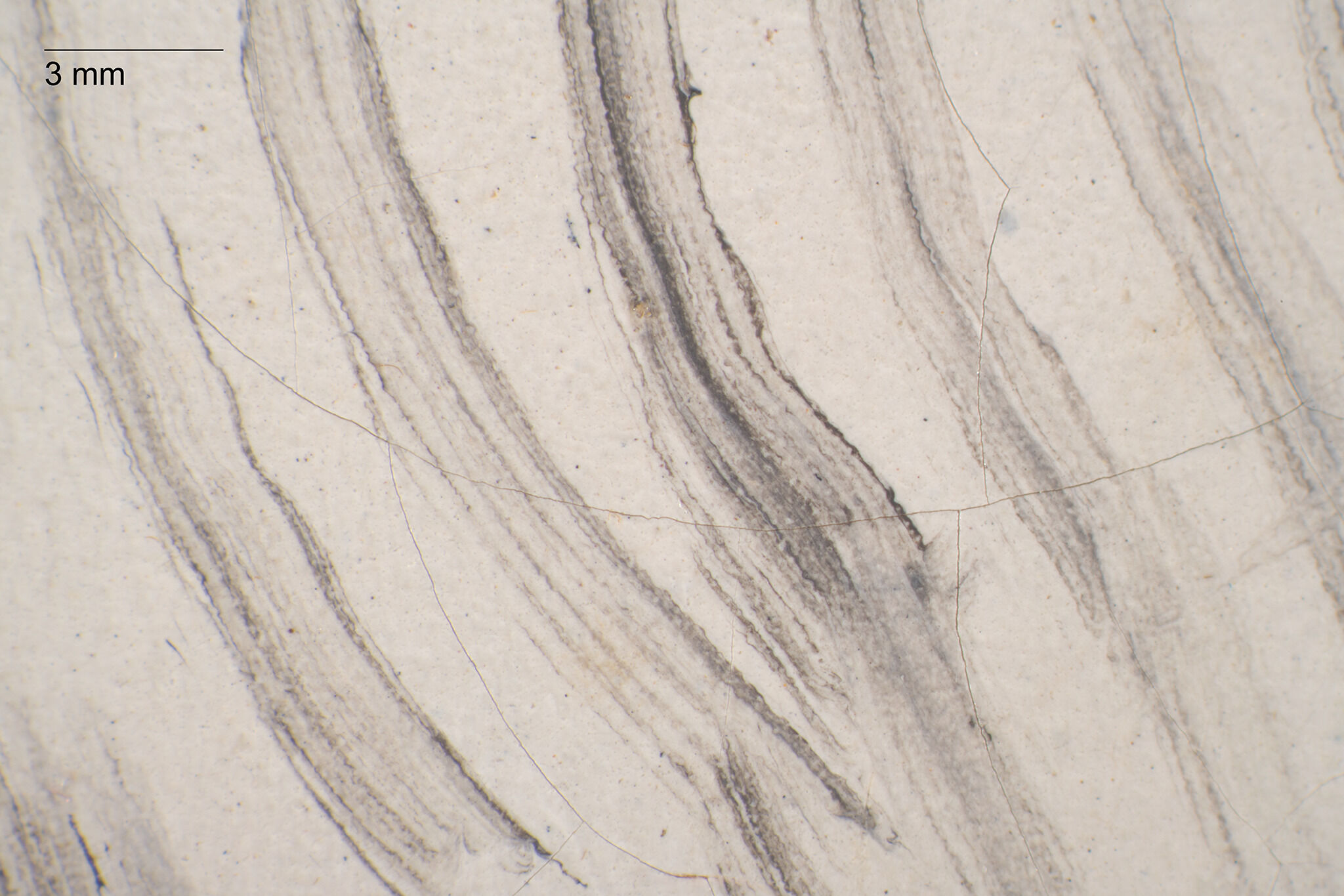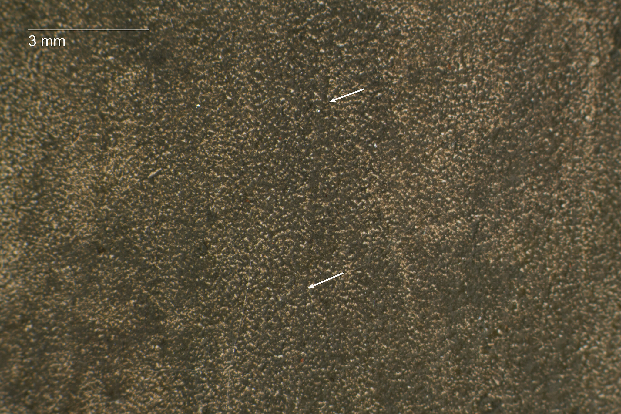 Fig. 5. Photomicrograph of the white shirt, Portrait of the Sculptor Paul Lemoyne (ca. 1810–11), revealing the grainy texture of the ground layer beneath an overlying gray wash