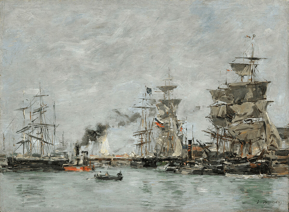 Eugène Boudin, The Port of Deauville, ca. 1884, oil on panel, 10 1/8 x 13 3/4 in. (25.7 x 34.9 cm), Purchase: William Rockhill Nelson Trust, 33-14/1