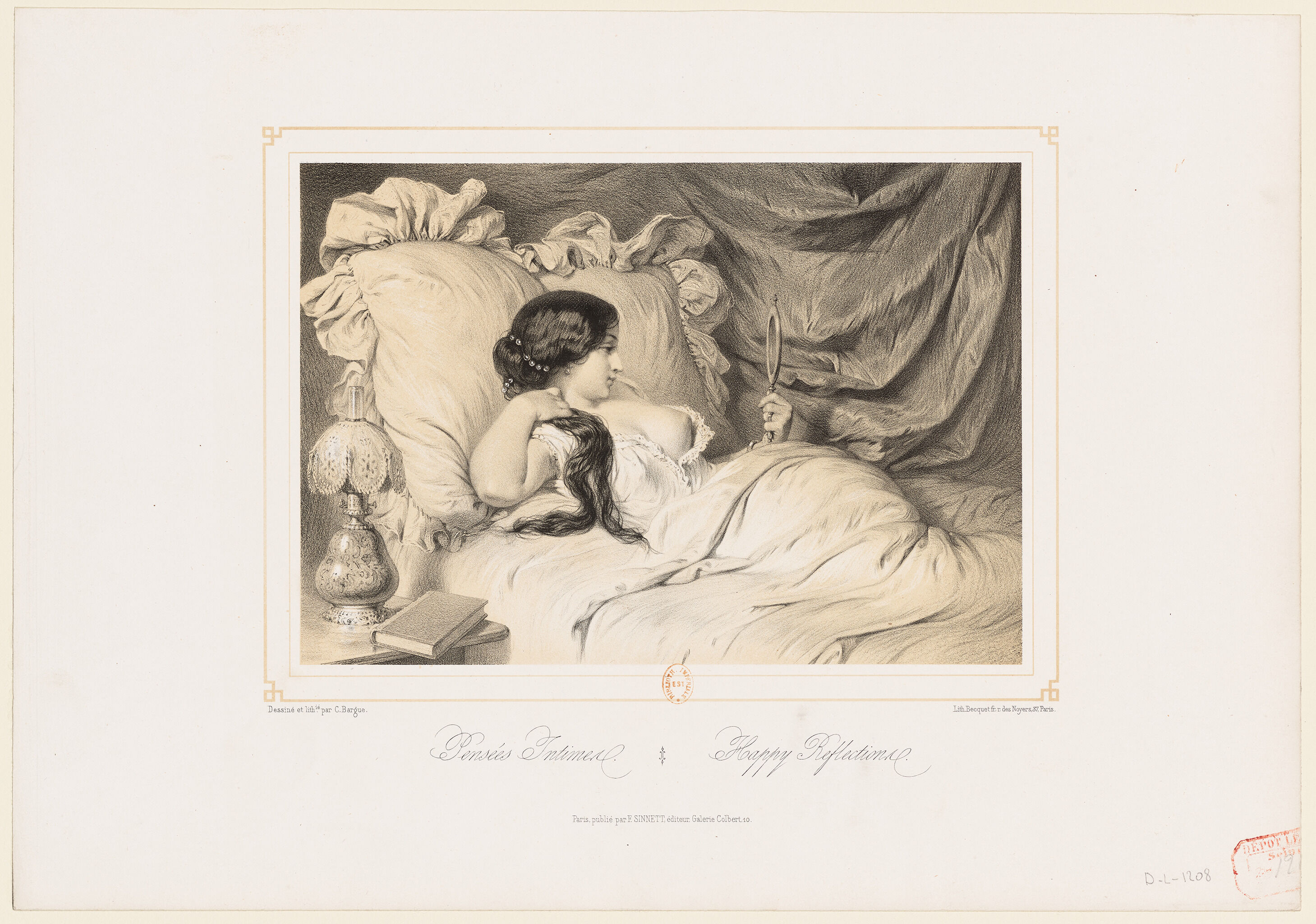 Fig. 5. Charles Bargue (1826–83), Pensées Intimes, 1851, lithograph on paper, image: 7 1/16 x 9 3/4 in. (18 x 24.8 cm); sheet: 11 1/16 x 15 3/4 in. (28.1 x 40 cm), Bibliothèque nationale de France, Département des estampes et de la photographie, Paris. DC-282 (1)-FOL