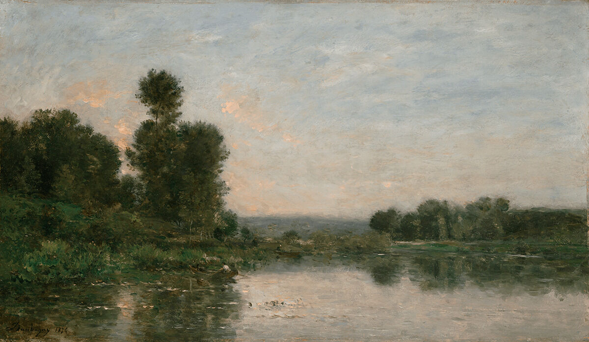 Charles François Daubigny, Banks of the Oise, 1875, oil on panel, 16 1/8 x 26 3/4 in. (41 x 68 cm), Musée des Beaux-Arts de Strasbourg.
