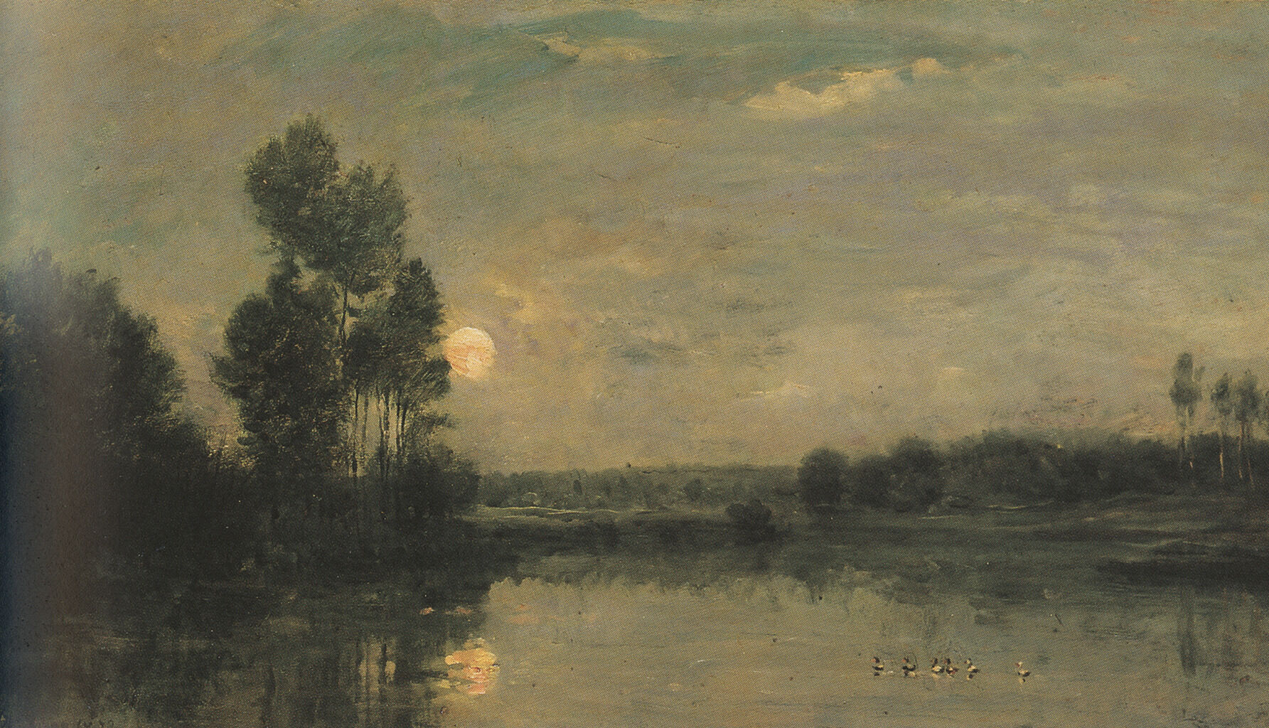 Charles François Daubigny, Moon Rising over the Banks of the Oise, 1872, oil on panel, 12 5/8 x 22 1/2 in. (32 x 57 cm), Mohamed Mahmoud Khalil Museum, Cairo.
