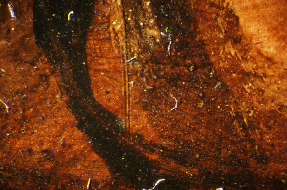 Fig. 12. Photomicrograph of black drawn line beneath the bow of the central female figure, Exit from the Theater (after 1863)