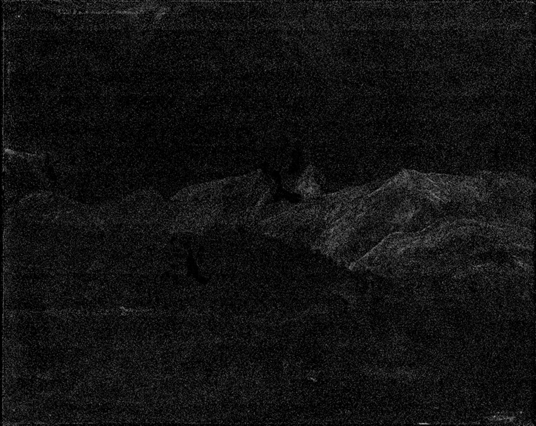 Fig. 34. X-ray fluorescence elemental map for the barium K-line acquired at 36.5 keV showing a range of foothills along with highlights from the overlying theater composition thought to be rich in calcium. The energetic barium K response from small amounts present in the calcium serves as a surrogate for calcium whose less energetic X-rays are absorbed by the overlying paint. Exit from the Theater (after 1863).