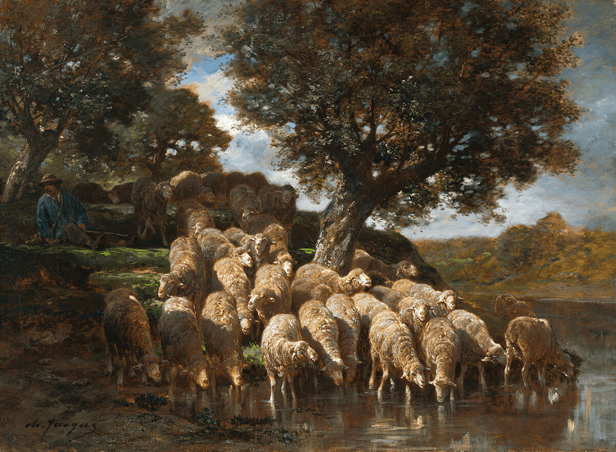 Simon Kelly, “Charles-Émile Jacque, Sheep at the Watering Hole, ca. 1888,” catalogue entry in French Paintings and Pastels, 1600–1945: The Collections of The Nelson-Atkins Museum of Art, ed. Aimee Marcereau DeGalan (Kansas City: The Nelson-Atkins Museum of Art, 2022), https://doi.org/10.37764/78973.5.520.5407.