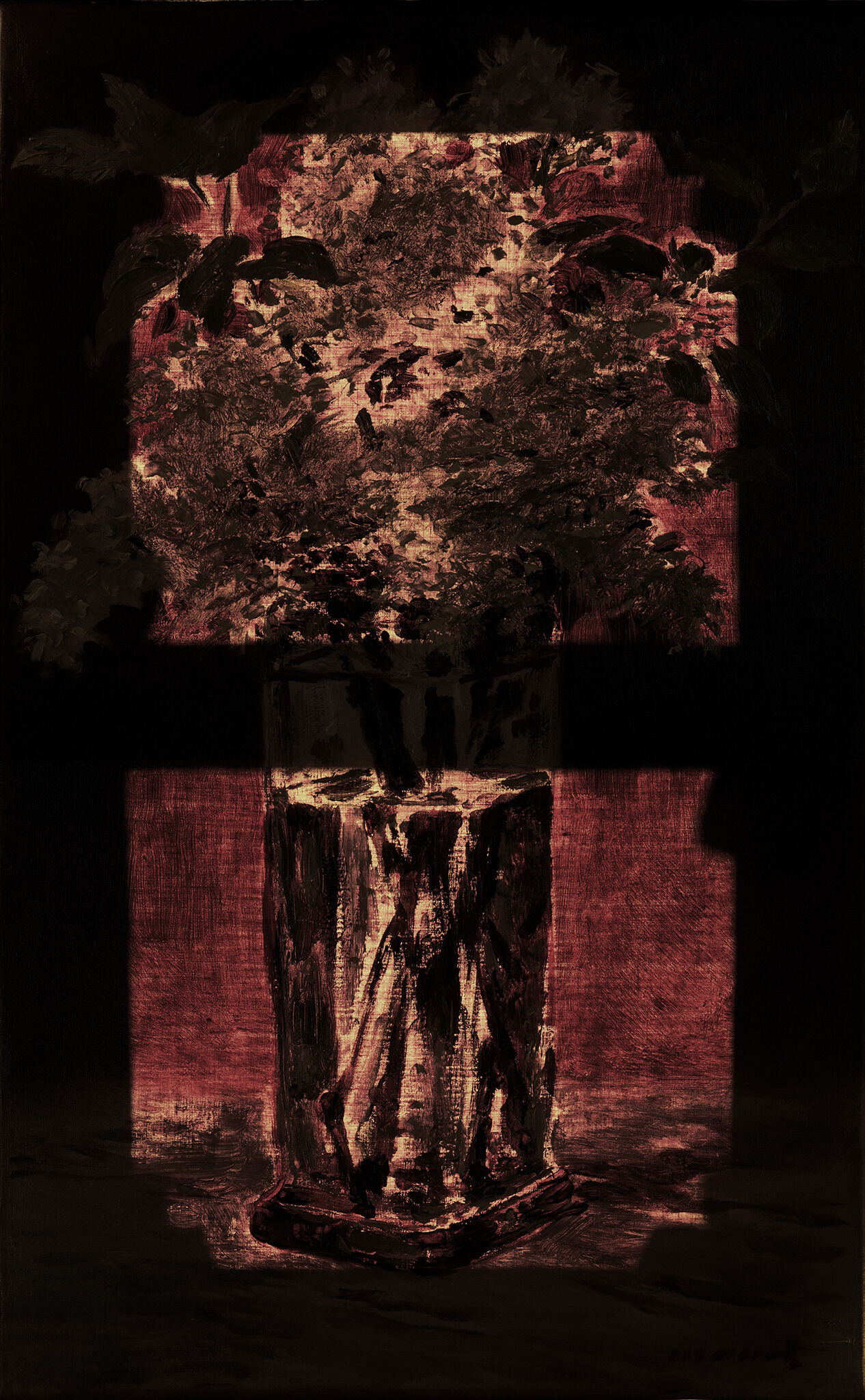 Fig. 9. Transmitted light image of White Lilacs in a Crystal Vase (ca. 1882), illustrating the extent of unpainted ground