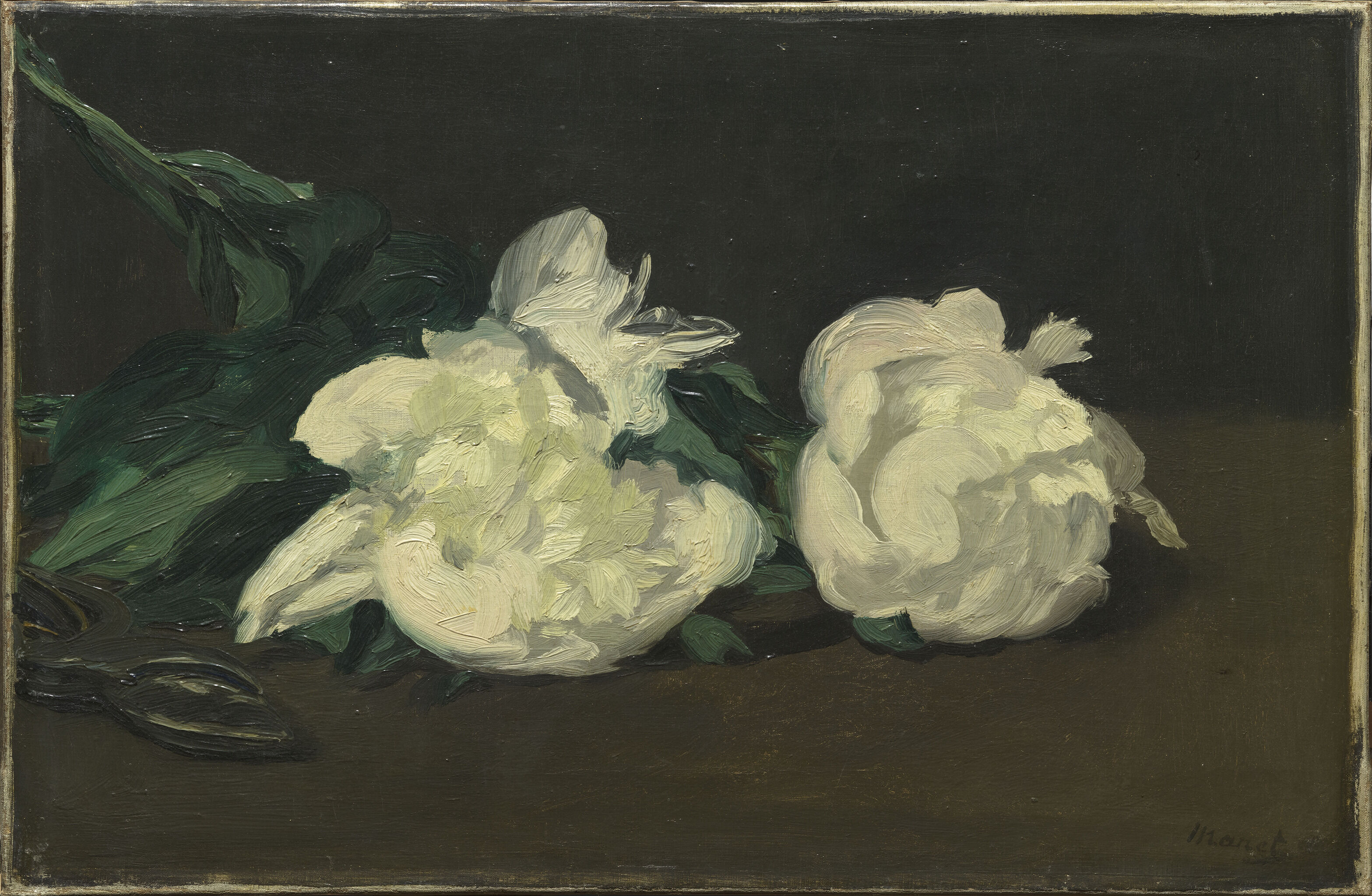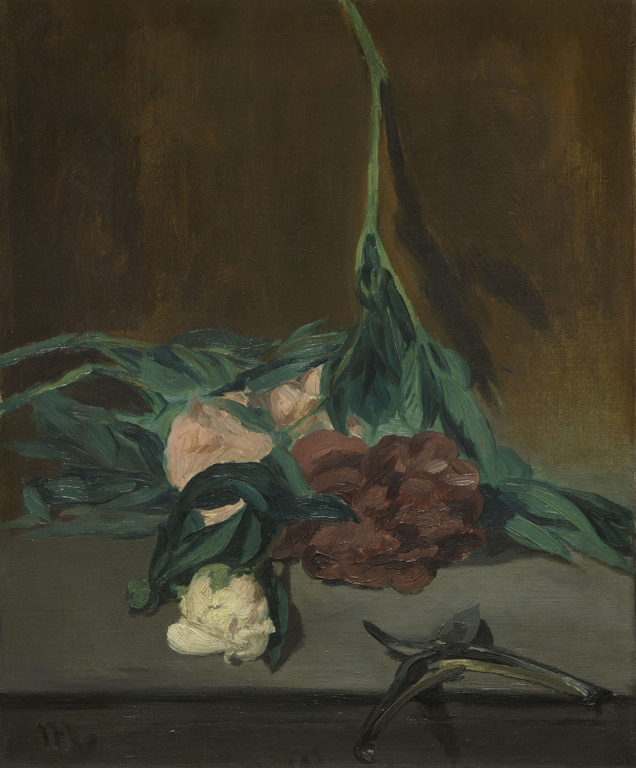 Fig. 2. Edouard Manet, Branch of Peonies and Pruning Shears, 1864, oil on canvas, 11 13/16 x 18 5/16 in. (30 x 46.5 cm), Musée d’Orsay, Paris, Bequest of comte Isaac de Camondo, RF 1995