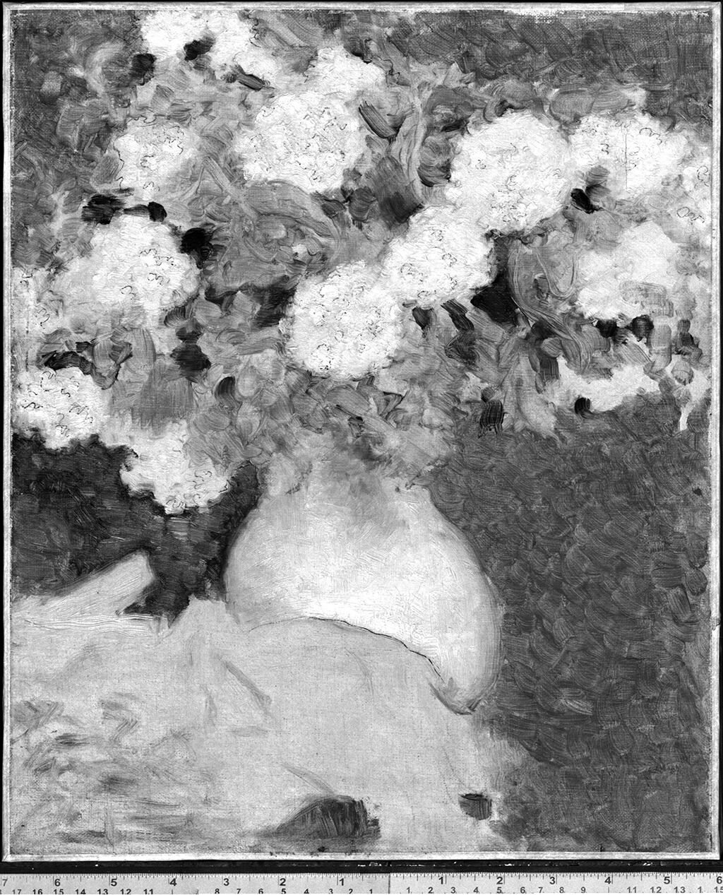 Fig. 10. Infrared reflectogram captured at 1950 nanometers, Still Life with Guelder Roses (1892)