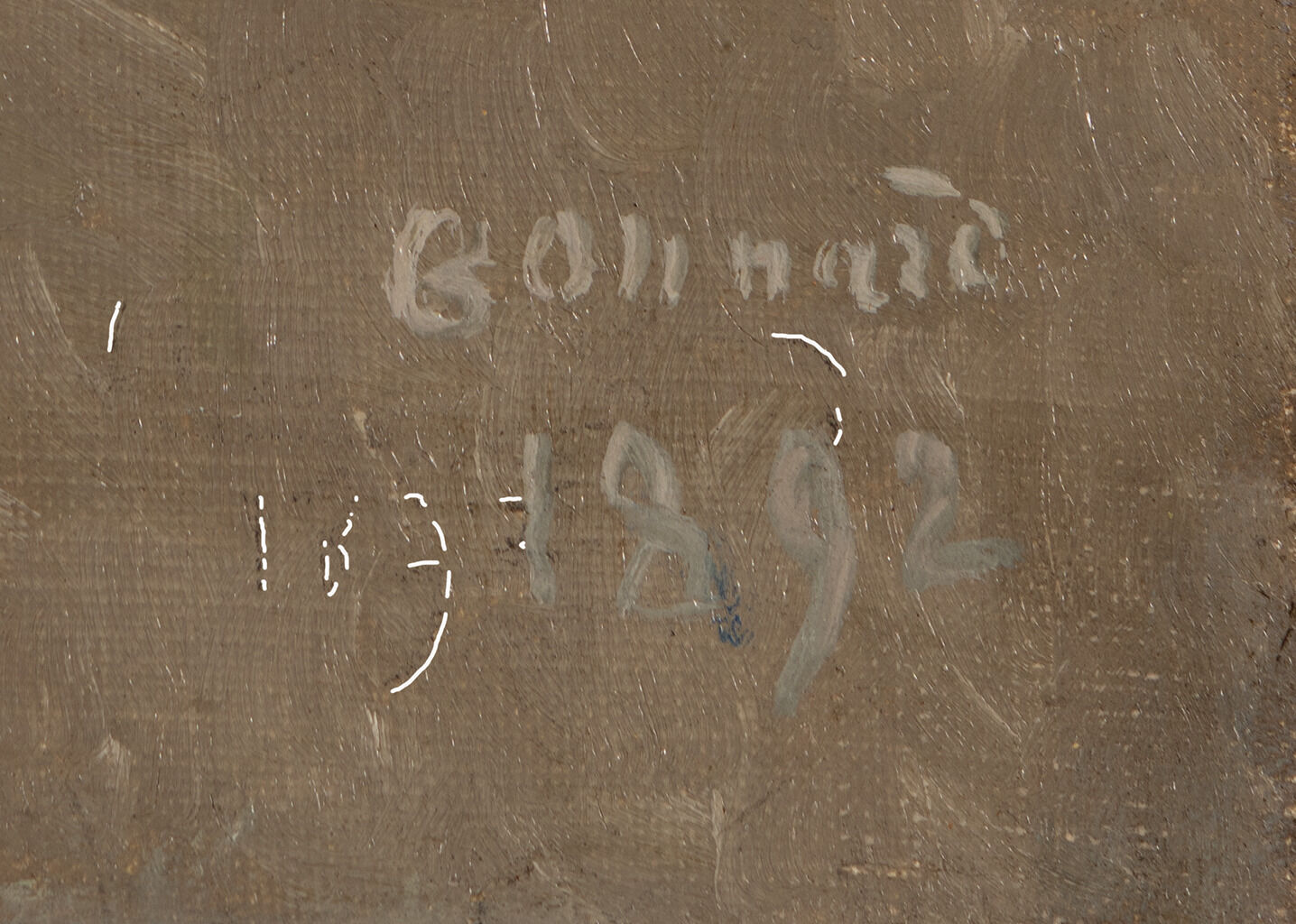 Jean and Henry Dauberville record the painting’s date as 1892, but retouched by the artist in 1929, when Bonnard added the signature. See Jean Dauberville and Henry Dauberville, Bonnard: Catalogue Raisonné de l’Œuvre Peint, 1888–1905 (Paris: Éditions J. et H. Bernheim-Jeune, 1965), no. 31, p. 1:107.