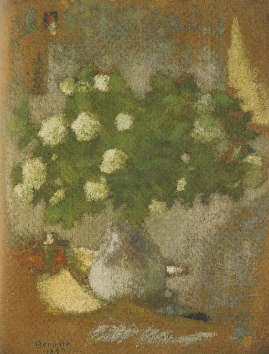 Pierre Bonnard, Flowers: Snowballs, 1891, oil on canvas, 16 1/8 x 12 5/8 in. (41 x 32 cm), private collection; illustrated in Jean Dauberville and Henry Dauberville, Bonnard: Catalogue Raisonne de l’Œuvre Peint, 1888–1905 (Paris: Éditions J. et H. Bernheim-Jeune, 1965), no. 30, p. 1: 106.