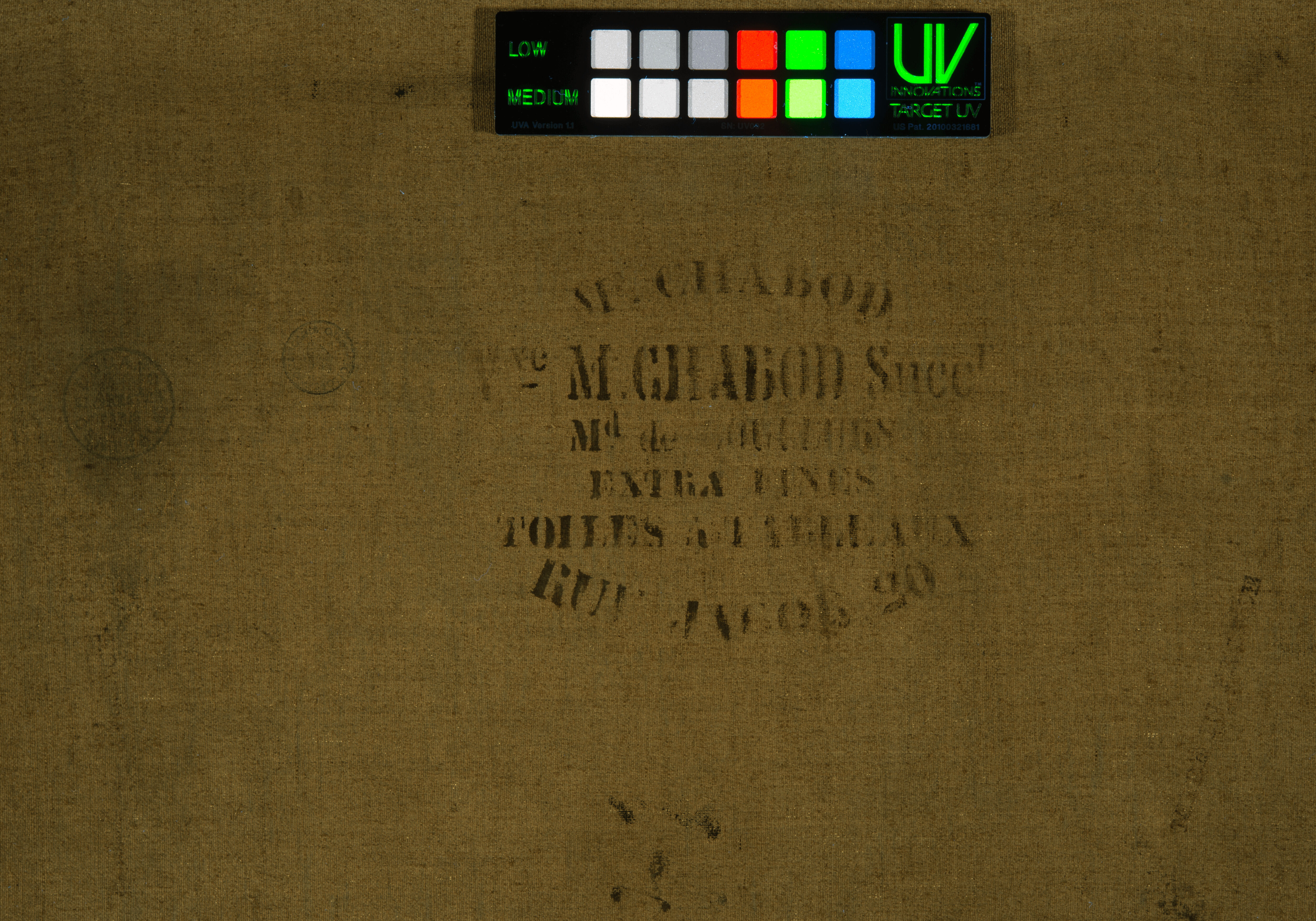 Fig. 6. Detail of Chabod canvas stamp in ultraviolet-induced visible fluorescence, Quarry at Bibémus (1898–1900)