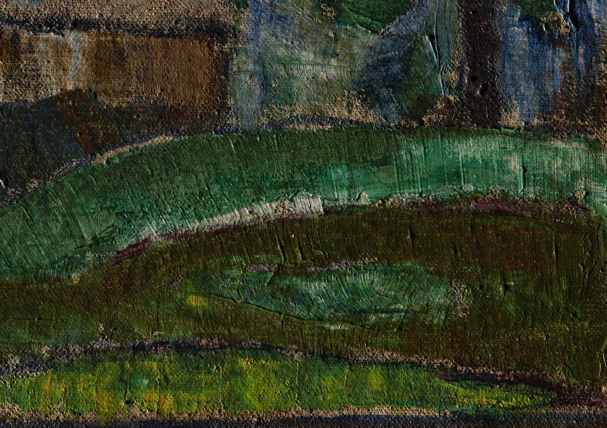 Fig. 8. Raking light detail of the painted landscape in Faaturuma (Melancholic) (1891)