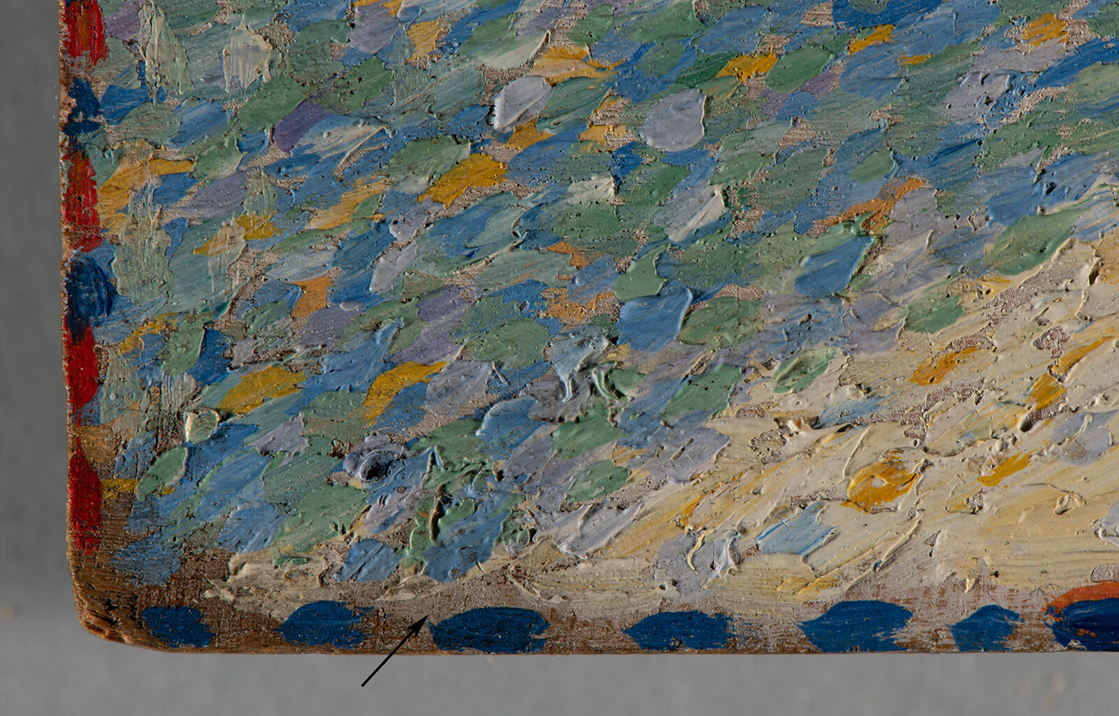 The Nelson-Atkins sketch is a rarity among the Gravelines corpus of works. Only one of the other three paintings in the series, The Channel of Gravelines, Evening (1890; Museum of Modern Art, New York), has a preparatory oil, and for the other two canvases, no studies on panel or paper are known to exist. The Nelson-Atkins panel was given by Seurat’s family to his colleague Maximilien Luce (1858–1941), who first allowed the work to be publicly exhibited in 1905 and subsequently lent it to at least four other exhibitions between 1906 and 1934.
