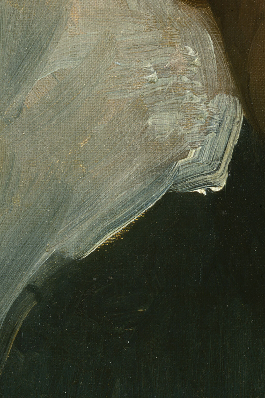 Fig. 7. Detail of the jacket and background at lower left, Head of a Man (1885)