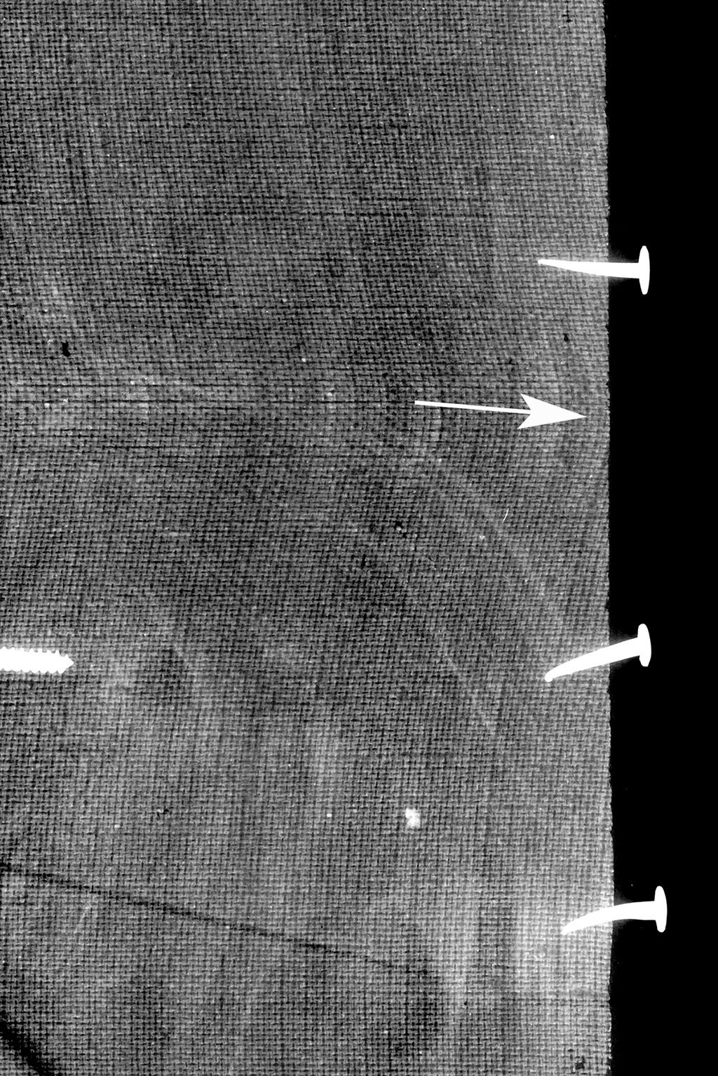 Fig. 8. Detail of radiograph, Head of a Man (1885), showing the cusping of the canvas on the lower right