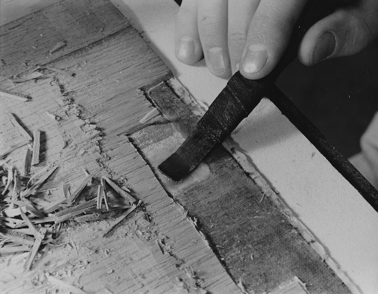 painting’s backing board, middle left side, typewritten: 1936 / No
