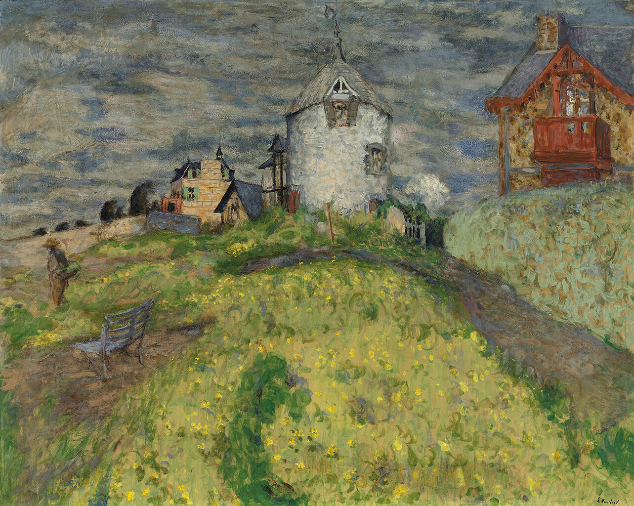 While landscapes are not a genre normally associated with Vuillard, they begin to emerge in the artist’s oeuvre in 1900. The year 1900 is often described as a “turning point”7See, for example, Jeanine Warnod, E. Vuillard, trans. Marie-Hélène Agüeros (New York: Crown, 1989), 47; and Mathias Chivot, “The Turning Point. Light from Elsewhere: Holiday Landscapes,” in Édouard Vuillard et Ker-Xavier Roussel (1890–1944): Intimités en plain air / Private Moments in the Open Air: Paysages / Landscapes, ed. Mathias Chivot, exh. cat. (Milan: Silvana, 2017), 111. in Vuillard’s career, as the artist introduced natural light and perspectival space into his NabiNabis: Nabi is the Hebrew word for prophet. Founded by Paul Sérusier, the Nabis were a group of Post-Impressionist painters active in France from 1888 to around 1900. Utilizing a simplified style of thick, undulating contours and flat planes of vibrant color inspired by Synthetism, the Nabis rejected naturalistic depictions of reality and relied instead on metaphor and purely formal devices to evoke feelings and subject matter. An experimental group of painters, the Nabi created stage sets for Symbolist theatre productions and painted on unconventional supports such as velvet and cardboard. See also Synthetism.-style compositions and engaged in more direct observation of his depicted subjects around the turn of the century. Particularly foundational for Vuillard was an experience he had in L’Étang-la-Ville, a suburb west of Paris, on August 10, 1900. Spending time at the country home of his fellow Nabi painter and brother-in-law Ker-Xavier Roussel (1867–1944), Vuillard wrote to Nabi artist Félix Vallotton (Swiss, 1865–1925) that he was “amazed” to see the clouds shift in shape as the sky appeared “sometimes blue, sometimes gray, sometimes green.”8Gilbert Guisan and Doris Jakubec, eds., Félix Vallotton: Documents pour une biographie et pour l’histoire d’une œuvre (Paris: La Bibliothèque des Arts, 1974), 2:47–48. “Je suis étonné de voir le ciel tantôt bleu, tantôt gris, tantôt vert, et que les nuages ont des formes et des couleurs qui peuvent se classer, que sans se décarcasser à chercher des nuances il y a une grande jouissance à comprendre bonnement les choses” (I am amazed to see that the sky is sometimes blue, sometimes gray, sometimes green, and that the clouds have shapes and colors that can be classified, that without bothering to look for nuances there is a great pleasure in simply understanding things). Profoundly affected by this brush with fugitive nature, Vuillard went on to create what some scholars consider to be among his first pure landscape paintings, first in the environs of Vallotton’s home in Romanel, Switzerland, in late August–September 1900, and then in the southern French city of Cannes in the winter of 1900–01.9See, for example, MaryAnne Stevens and Kimberly Jones, “The Triumph of Light,” in Guy Cogeval, Édouard Vuillard, exh. cat. (Washington: National Gallery of Art, 2003), 284.