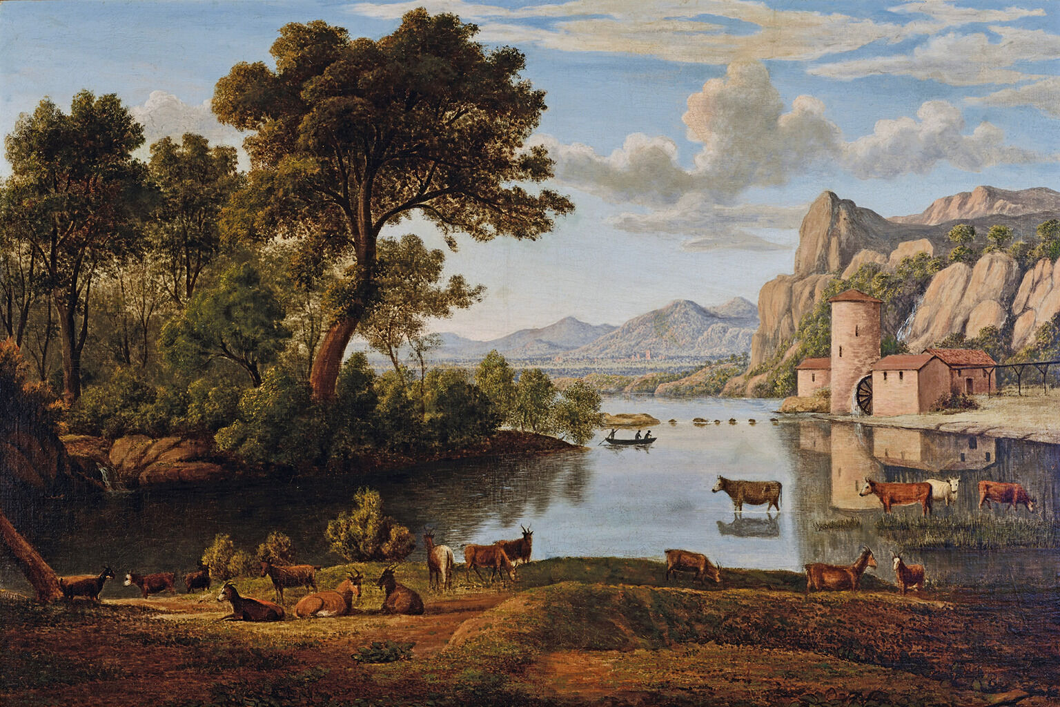 Fig. 6. John Glover, after Claude Gellée (Claude Lorrain), Mill on the Tiber, ca. 1840, oil on canvas, 30 x 45 in. (76 x 114 cm), private collection