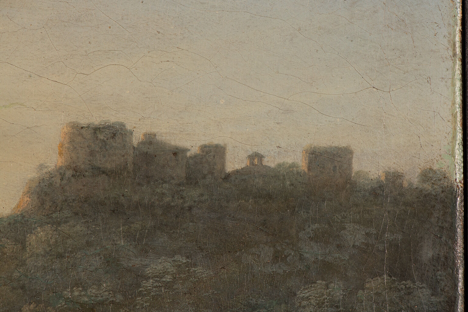 [6] See “Note of paintings bound in primogeniture, recovered by Don Giovanni Ruffo, prince della Scaletta from the ruins of the palace which fell in Messina with the horrible earthquake of 5 February 1783,” where two Claude paintings are listed as nos. 85–86 and located in the chapel: “Due paesini, di palmi 2 1/2 e 3, di monsieur Claudio Lorenese, onze 40.” These are probably Mill on the Tiber and Landscape with a Piping Shepherd. See De Gennaro, “Aggiunta alle notizie sulla collezione di Antonio Ruffo,” 213–14.