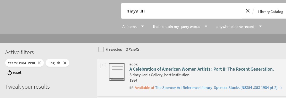 Example: If I know that I only want titles published between 1984 and 1990 and in English, I can apply those filters: