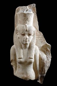 Statue of the goddess Mut, New Kingdom, 18th-20th Dynasties, 1539 – 1076 B.C.E. Limestone, 21 1/4 x 11 x 8 1/2 inches (54 x 28 x 22 cm). Museo Egizio, Turin.