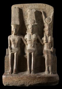 Statue of Ramesses II seated between the gods Amun and Mut, New Kingdom, 19th Dynasty, 1279-1213 B.C.E. Granite, 67 x 44 1/2 x 37 inches (170 x 113.5 x 94 cm). Museo Egizio, Turin.