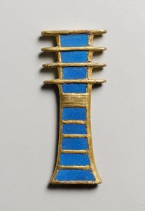 Djed-pillar amulet, 1279-1213 B.C.E. Gilded wood, blue glass, 5 1/8 x 2 3/16 x 3/8 inches (13 x 5.5 x 1 cm). Museo Egizio, Turin.