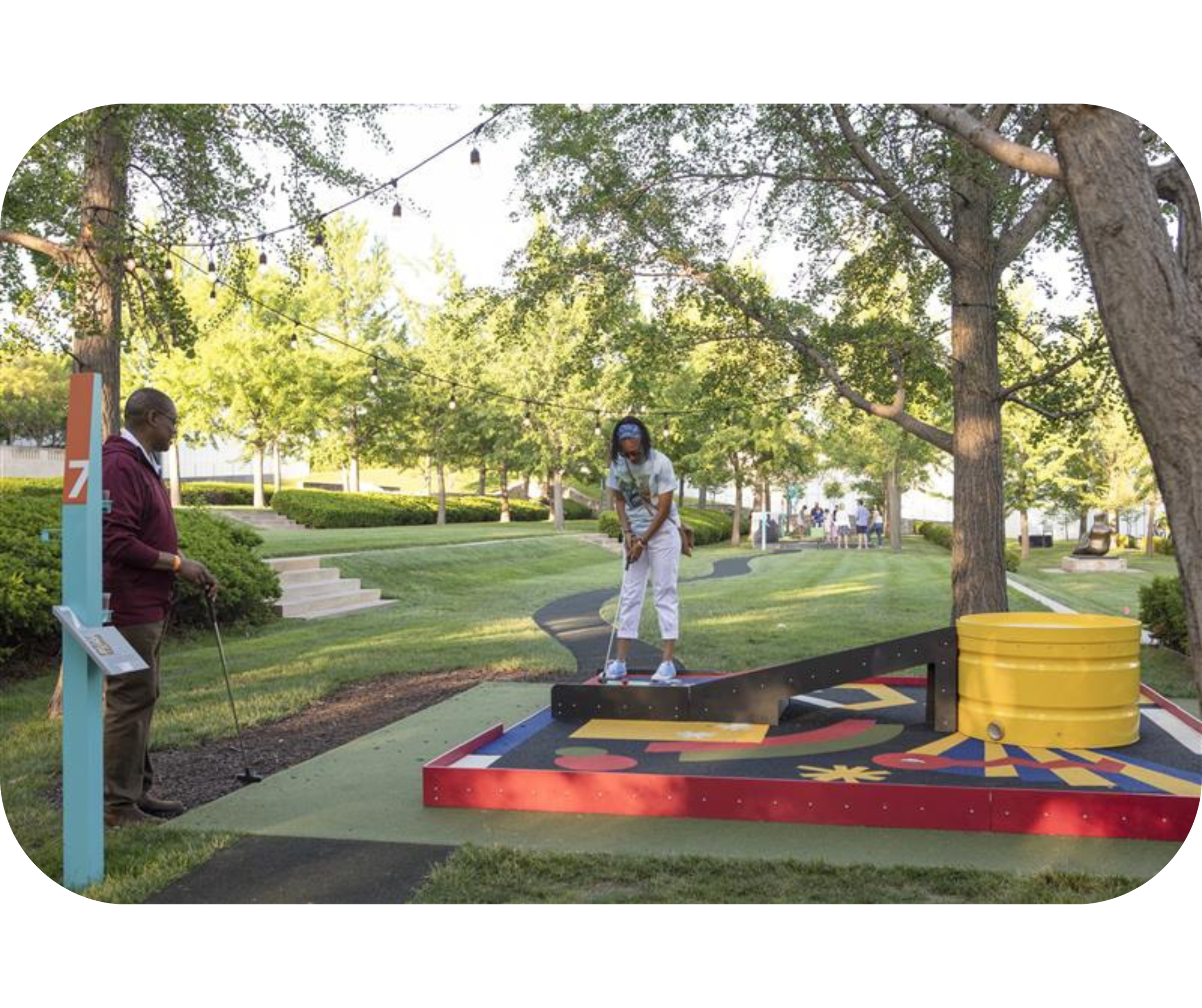 If you’re craving challenges beyond Art Course, grab the scavenger hunt activity at the Art Course Putter Pick-up Station. Use it to venture through the museum and match up the mini-golf holes with their collection counterparts. Bring your completed activity to the Museum Store for a special prize!