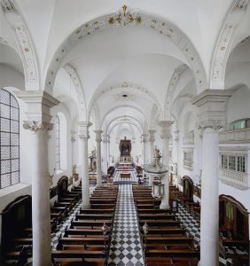 Candida Höfer, German, born 1944. Sankt Maximilian Düsseldorf I, 2012. Chromogenic print. Image: 55 × 51 3/4 inches (139.7 × 131.45 cm). Sheet: 70 7/8 × 67 1/2 inches (180.02 × 171.45 cm). Mount: 70 7/8 × 67 1/2 inches (180.02 × 171.45 cm). Framed: 72 1/4 × 69 × 1 3/4 inches (183.52 × 175.26 × 4.45 cm). Gift of the Hall Family Foundation. 2016.75.104