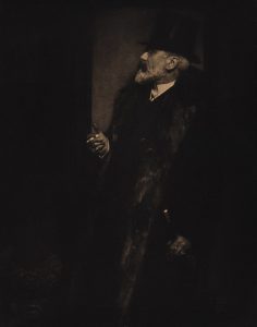 Image captions: Edward Steichen, American, born Luxembourg, 1879 – 1973. William M. Chase, 1906. Gum bichromate over platinum print. Image: 19 11/16 × 15 3/4 inches (50.01 × 40.01 cm). Sheet: 19 7/8 × 16 inches (50.48 × 40.64 cm). Mount: 19 7/8 × 16 inches (50.48 × 40.64 cm). Gift of the Hall Family Foundation. 2016.75.284